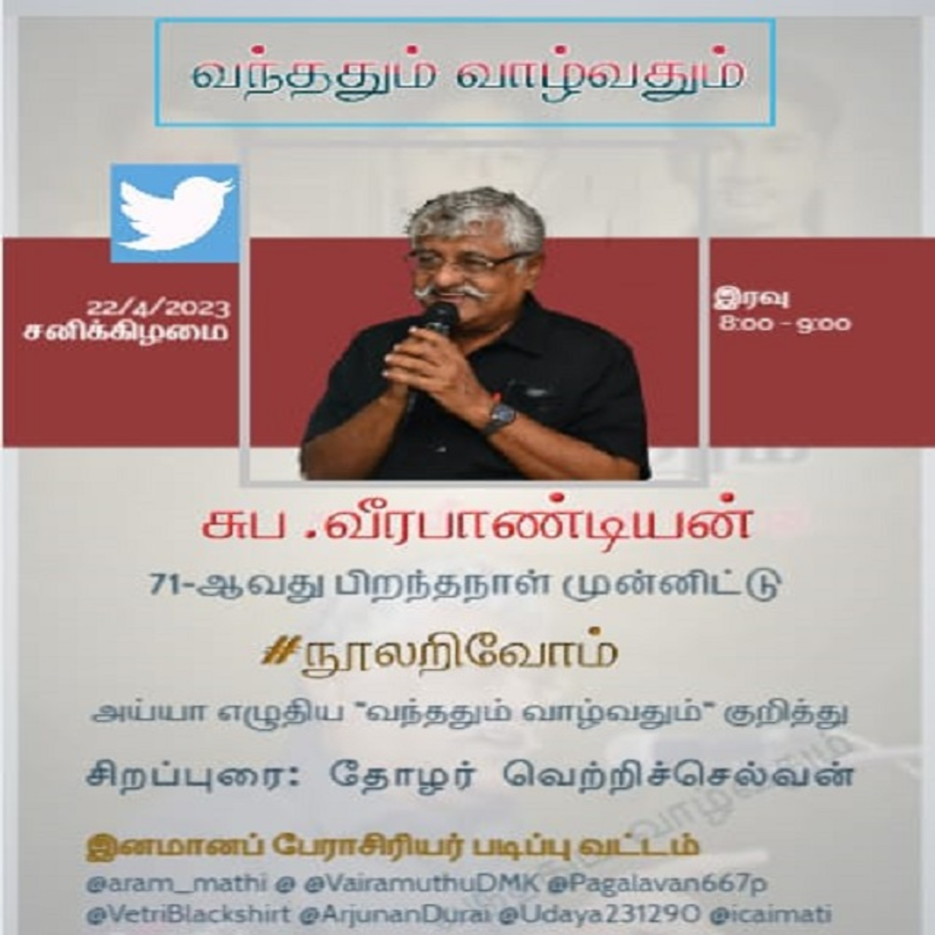 சுபவீ அய்யா 71வது பிறந்தநாள் - வந்ததும் வாழ்வதும் #நூலறிவோம்