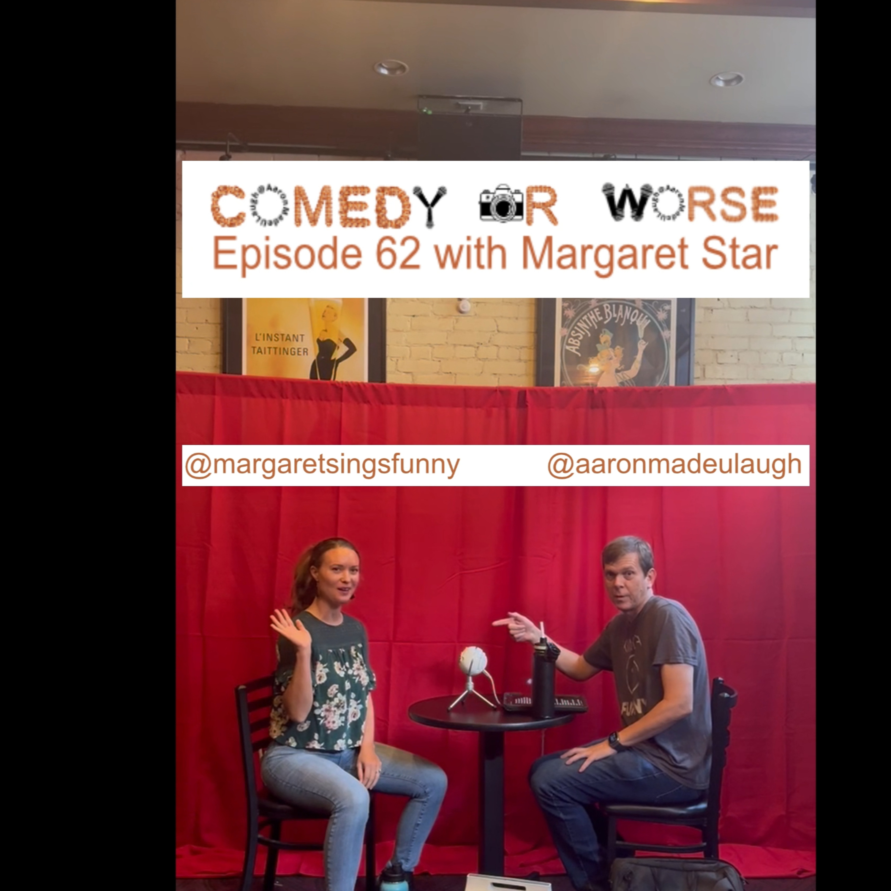On 09/19/2024 host Aaron Trahan (@aaronmadeulaugh) sat down with Margaret Star (@margaretsingsfunny) in the Brick Room at the World Famous Madhouse Comedy Club (@MadhouseComedyClub). We talked about Comedy and Life in general to find out just listen to the episode. Follow the podcast on IG (@comedyorworse)