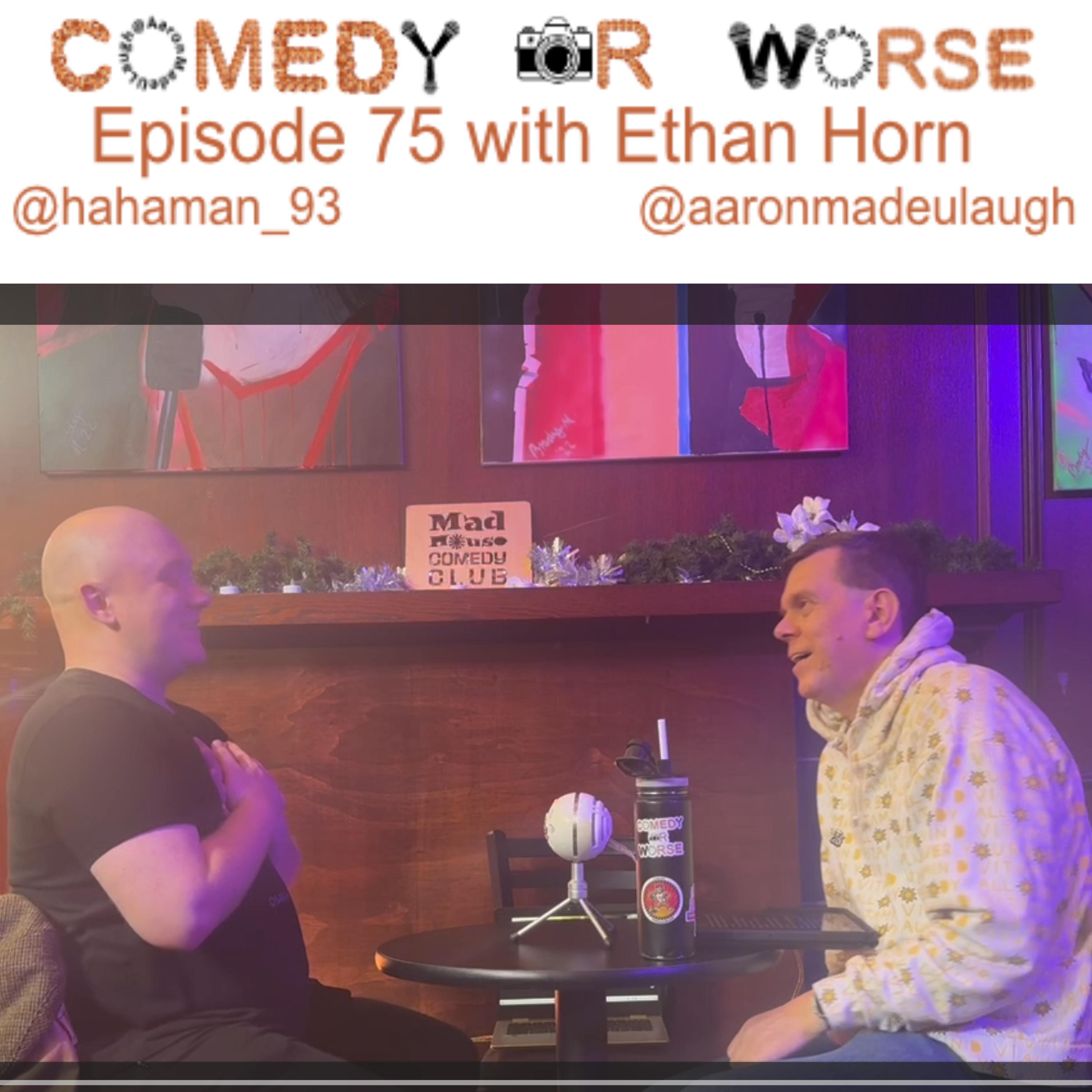On 01/28/2025 host Aaron Trahan (@aaronmadeulaugh) sat down with Ethan Horn (@hahaman_93) in the Brick Room at the World Famous Madhouse Comedy Club (@MadhouseComedyClub). We talked about Comedy and Life in general to find out just listen to the episode. Follow the podcast on IG (@comedyorworse)