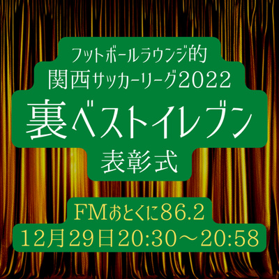 2022年12月29日放送分。2022年の関西サッカーリーグ、カゴノブアキ的裏ベストイレブンを選びます!