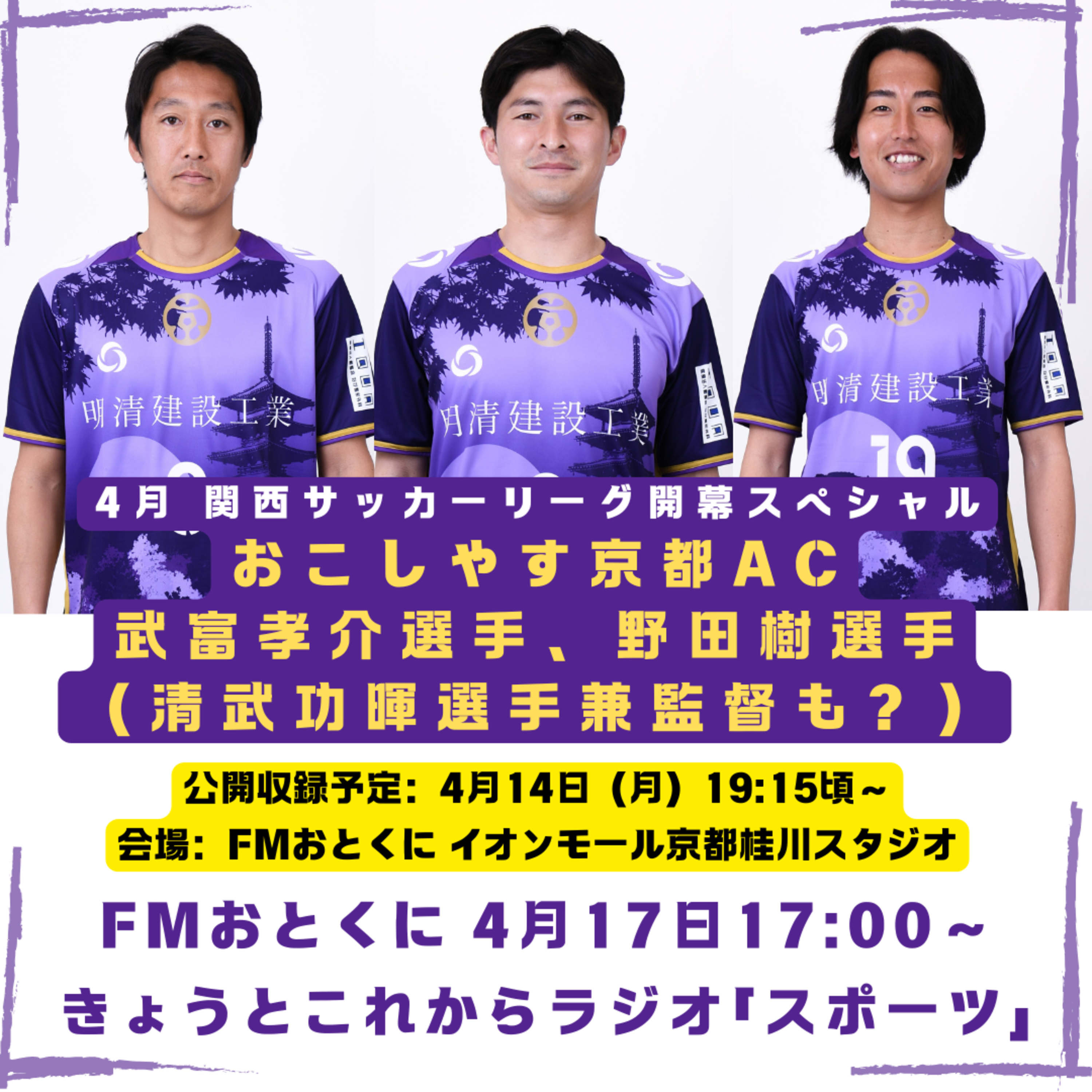 おこしやす京都ACから武富孝介選手、野田樹選手、清武功暉選手兼監督が出演!