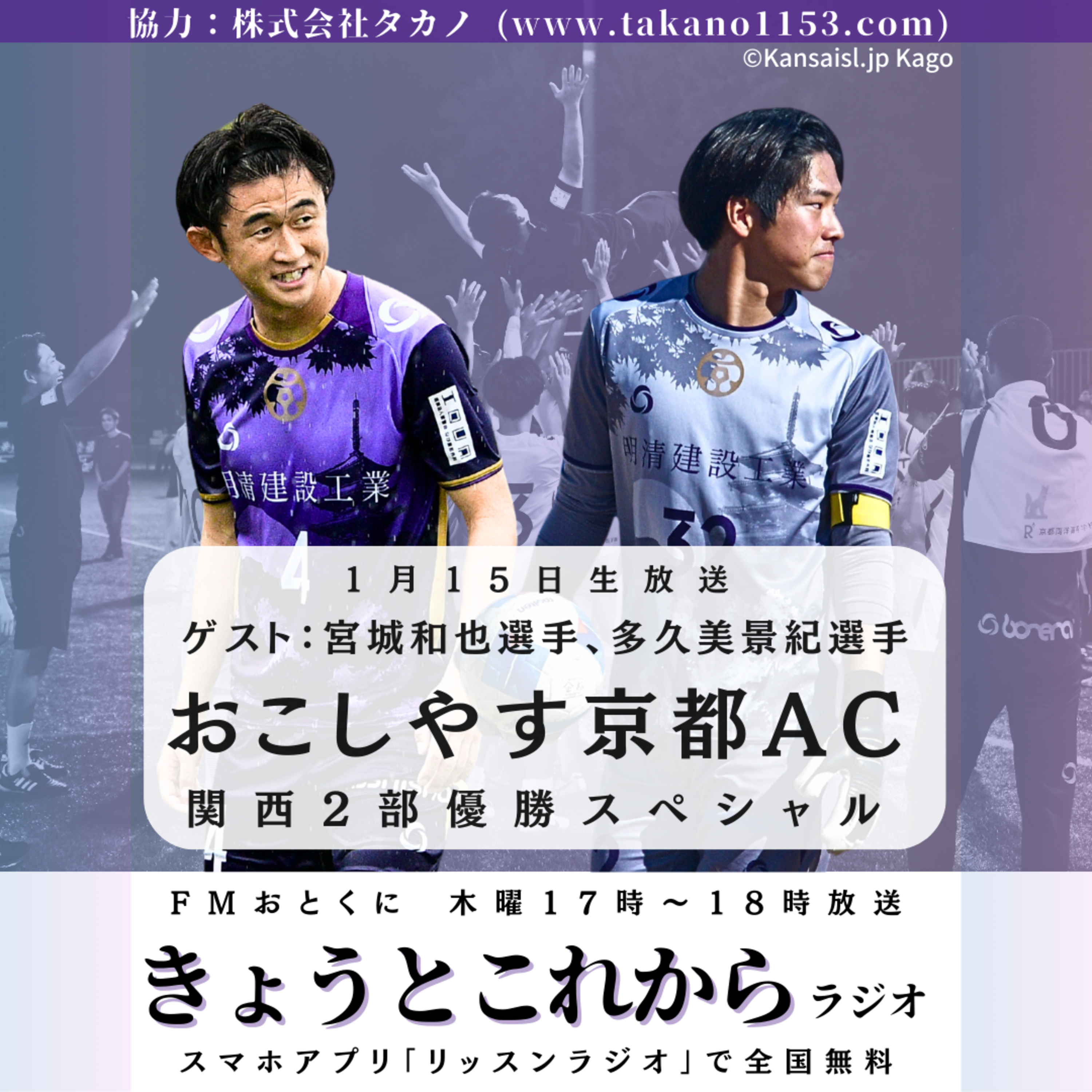 2025年の関西サッカーリーグ2部を優勝したおこしやす京都ACのシーズンを振り返ります!ゲストは宮城和也選手と多久美景紀選手です。