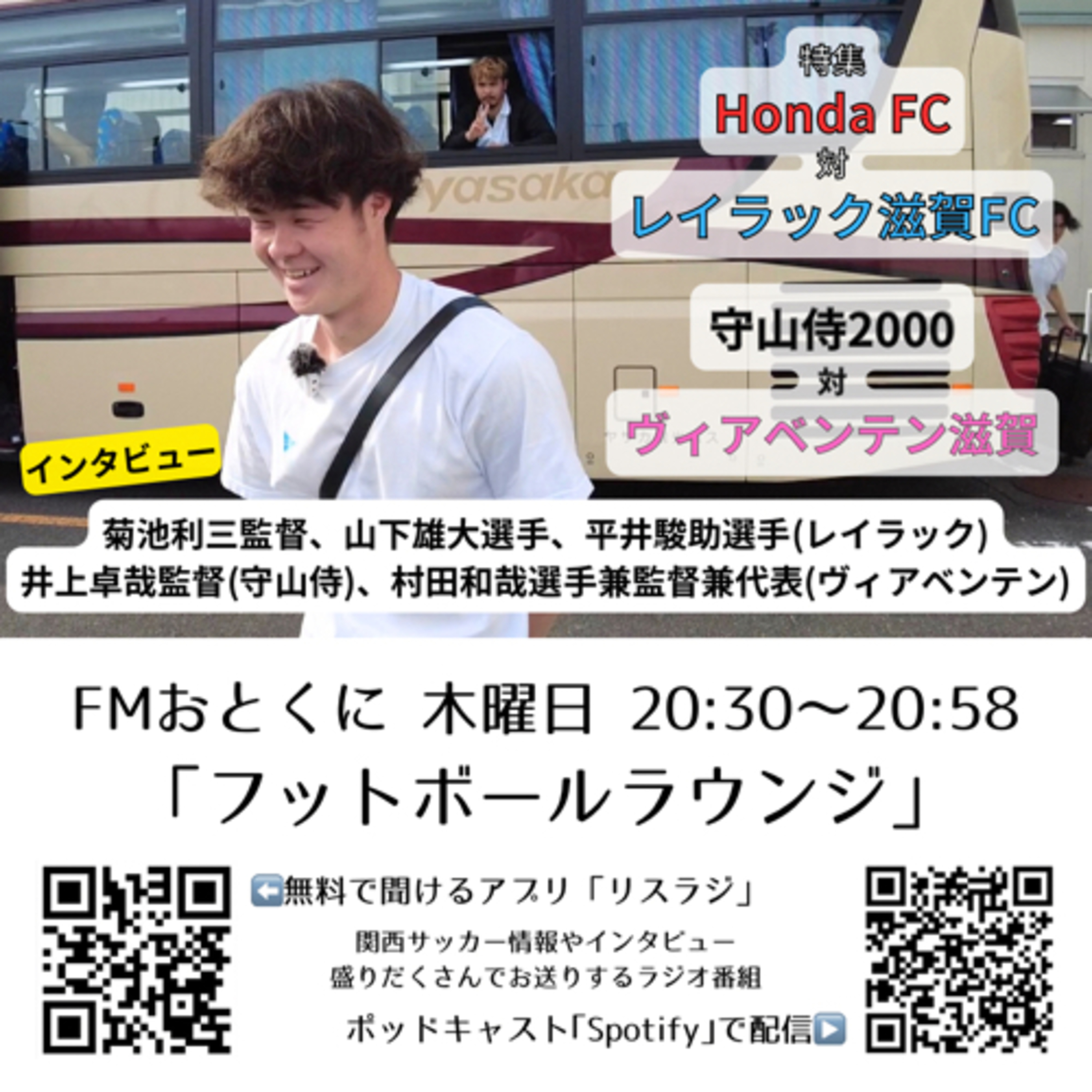 4月4日に放送した「フットボールラウンジ」。 Honda FCとの試合を戦ったあとのレイラック滋賀FC、菊池利三監督、平井駿助選手、山下雄大選手のインタビューを放送。 また滋賀FAカップの守山侍2000対ヴィアベンテン滋賀も特集!井上卓哉監督と村田和哉選手兼監督兼代表のインタビューも。