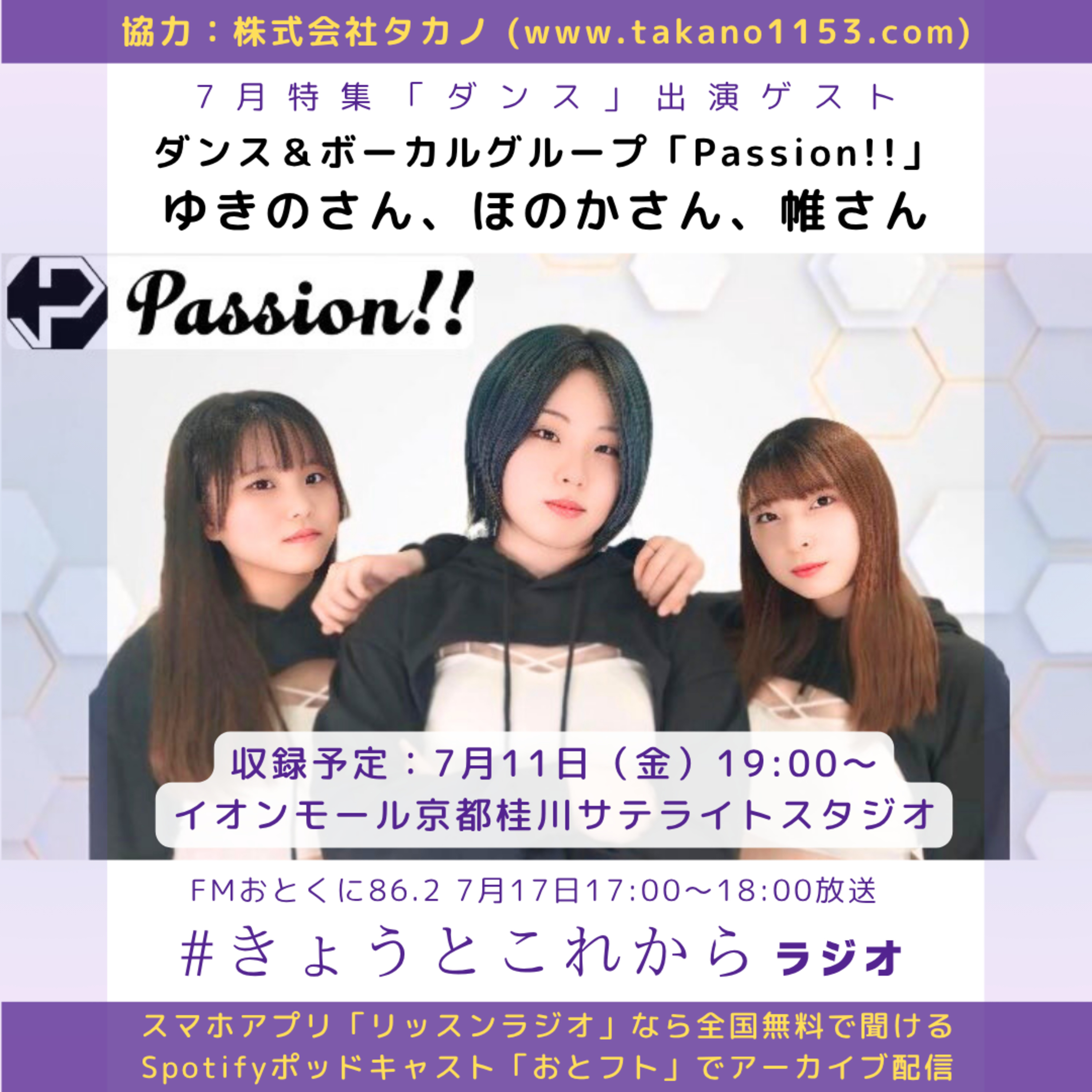 ゲスト出演は関西発ダンス&ボーカルグループ「Passion!!」のメンバー、ゆきのさん&ほのかさん&帷さんです。