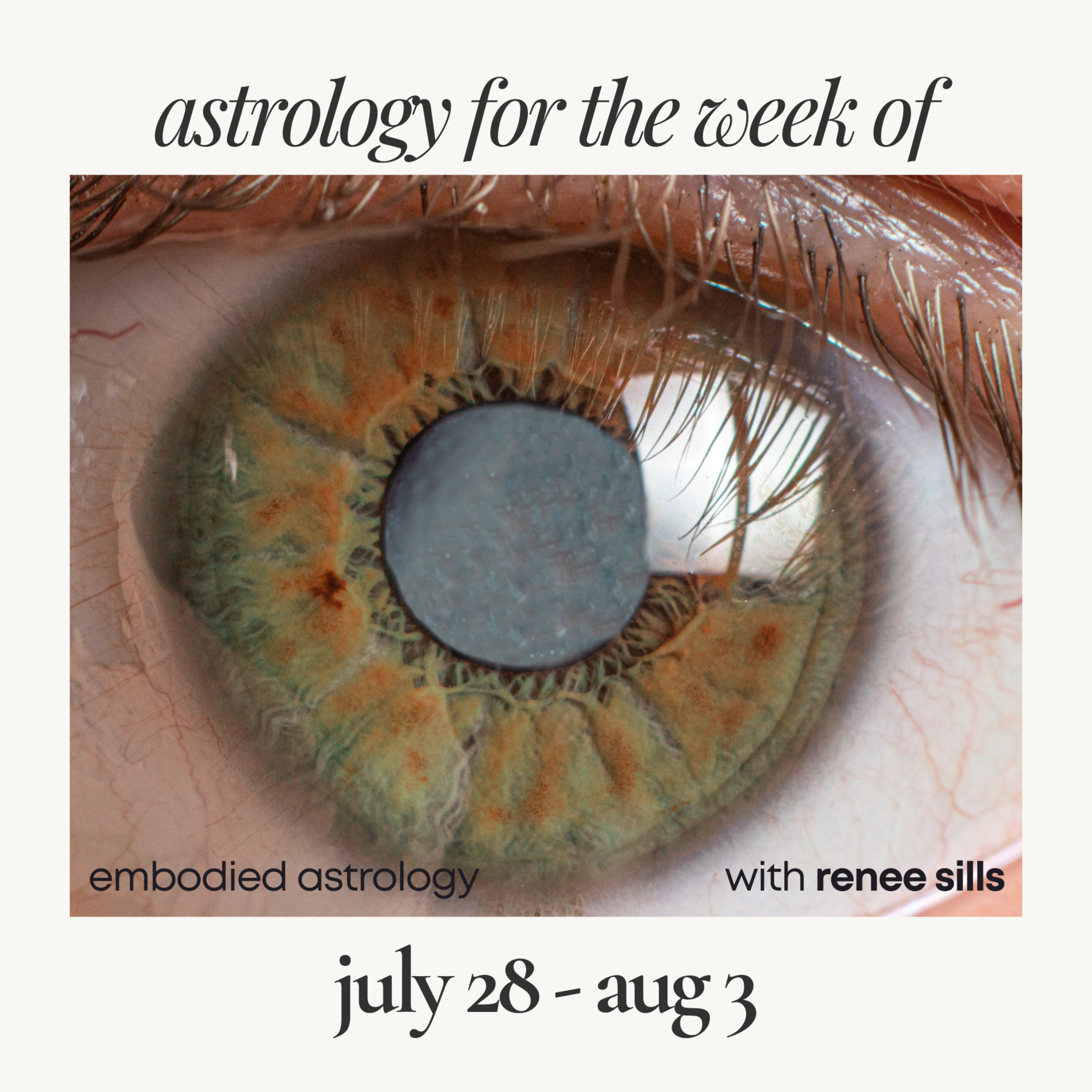This week-ahead reading for July 28-Aug 3, 2025 is an excerpt from today’s Somatic Space class with Renee Sills. For the full-length forecast and embodied practice for this week, purchase the recording here.
