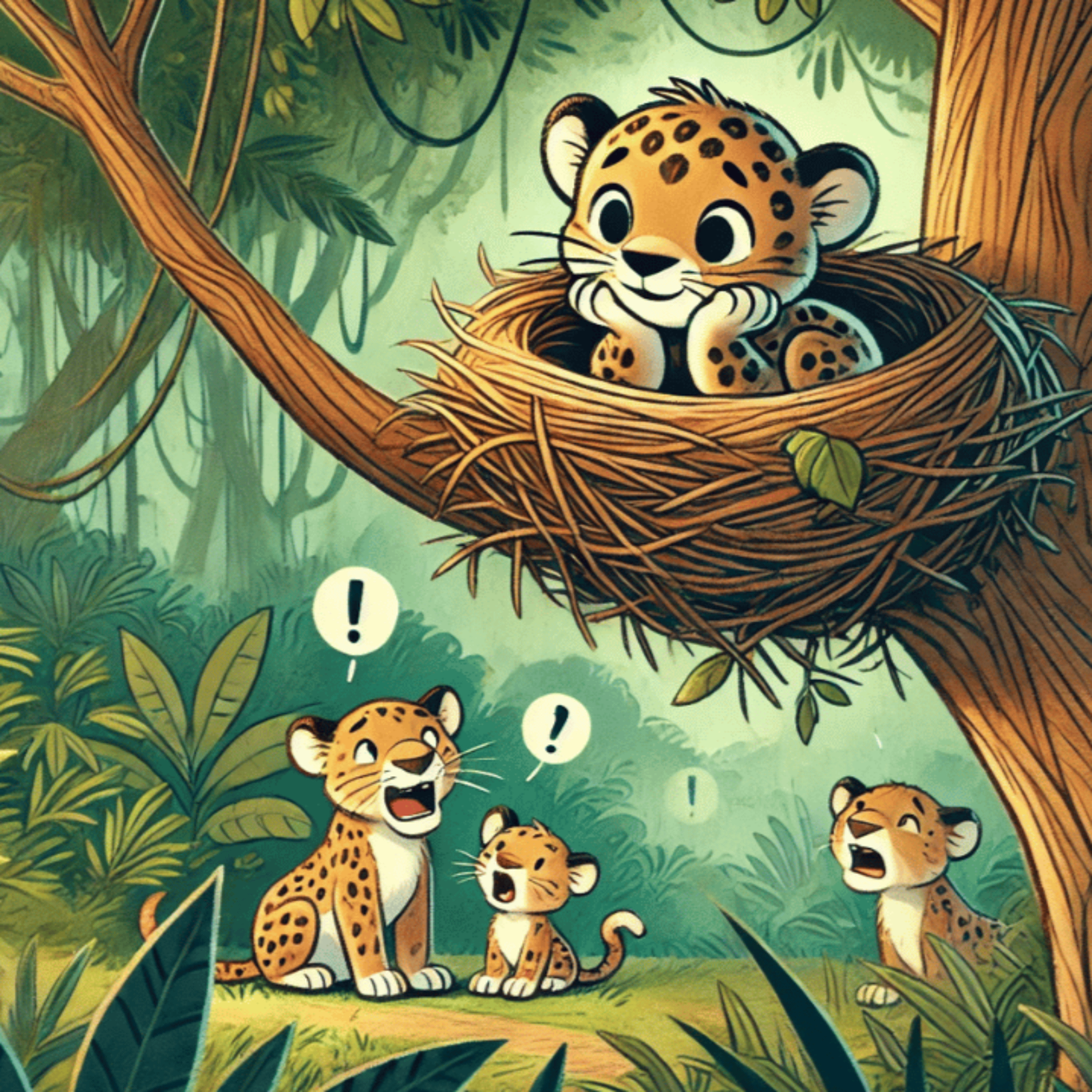 Im dichten Dschungel am Amazonas ist immer etwas los – und manchmal wird es Billy, dem kleinen Leoparden, einfach zu viel. Er sucht sich ein stilles Plätzchen hoch oben in einem verlassenen Nest, weit weg vom Trubel. Doch als seine Familie ihn vermisst und überall nach ihm sucht, merkt Billy, dass er gar nicht so alleine sein will. Wird er aus seinem Versteck kommen?