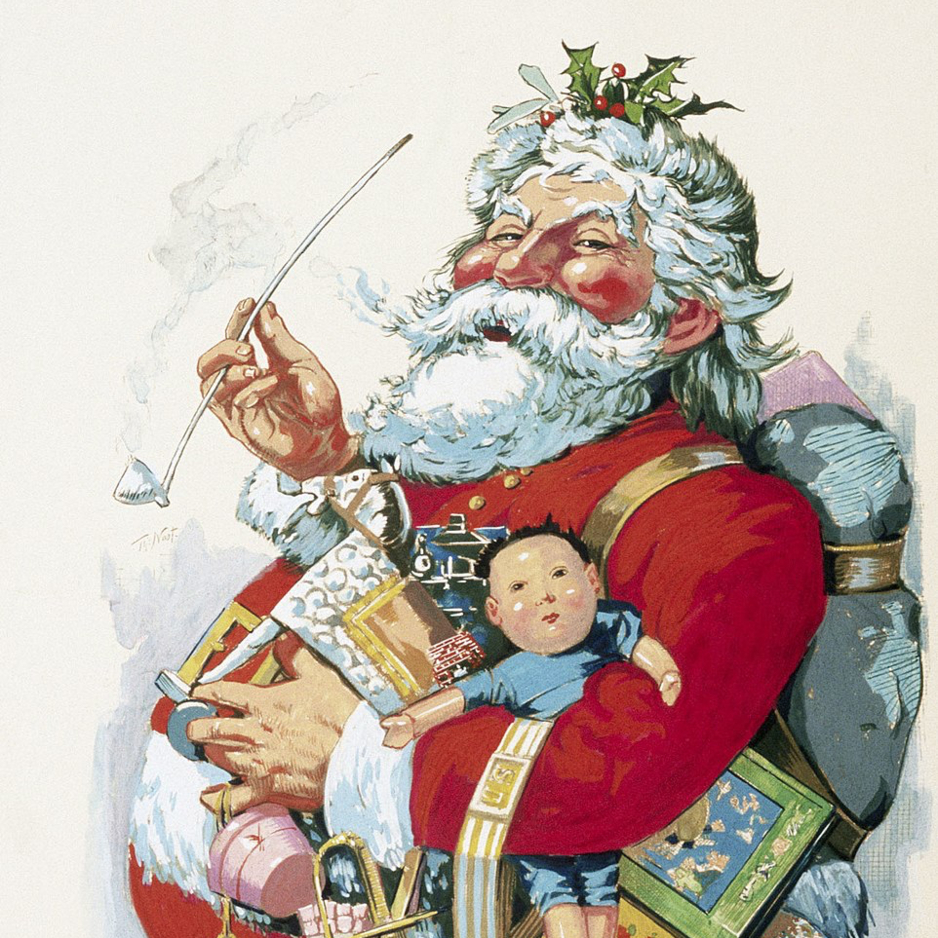 Santa Claus, also known as Saint Nicholas, Kris Kringle, or Father Christmas, is a legendary figure who brings gifts to well-behaved children on Christmas Eve.