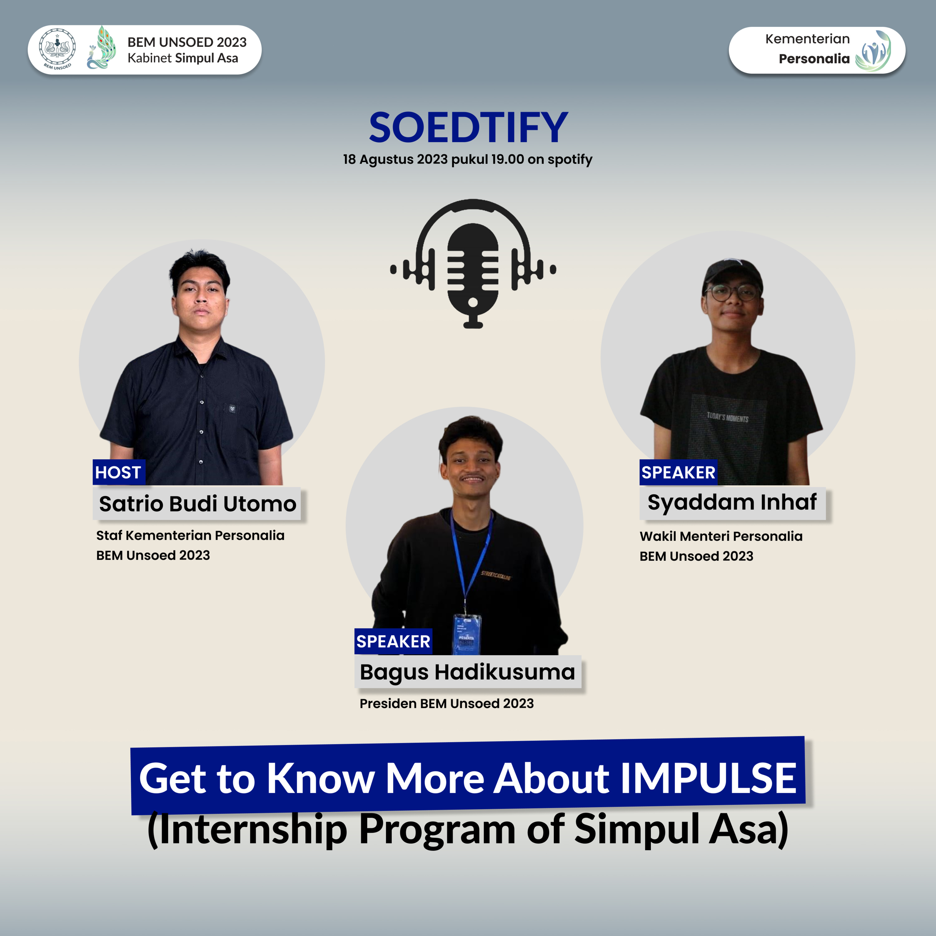 Yuk, cari tau dengan dengerin Soedtify kali ini yaitu "Get to Know More About IMPULSE" dan langsung daftar IMPULSE 2023 sebelum ketinggalan‼️🤩🎙️