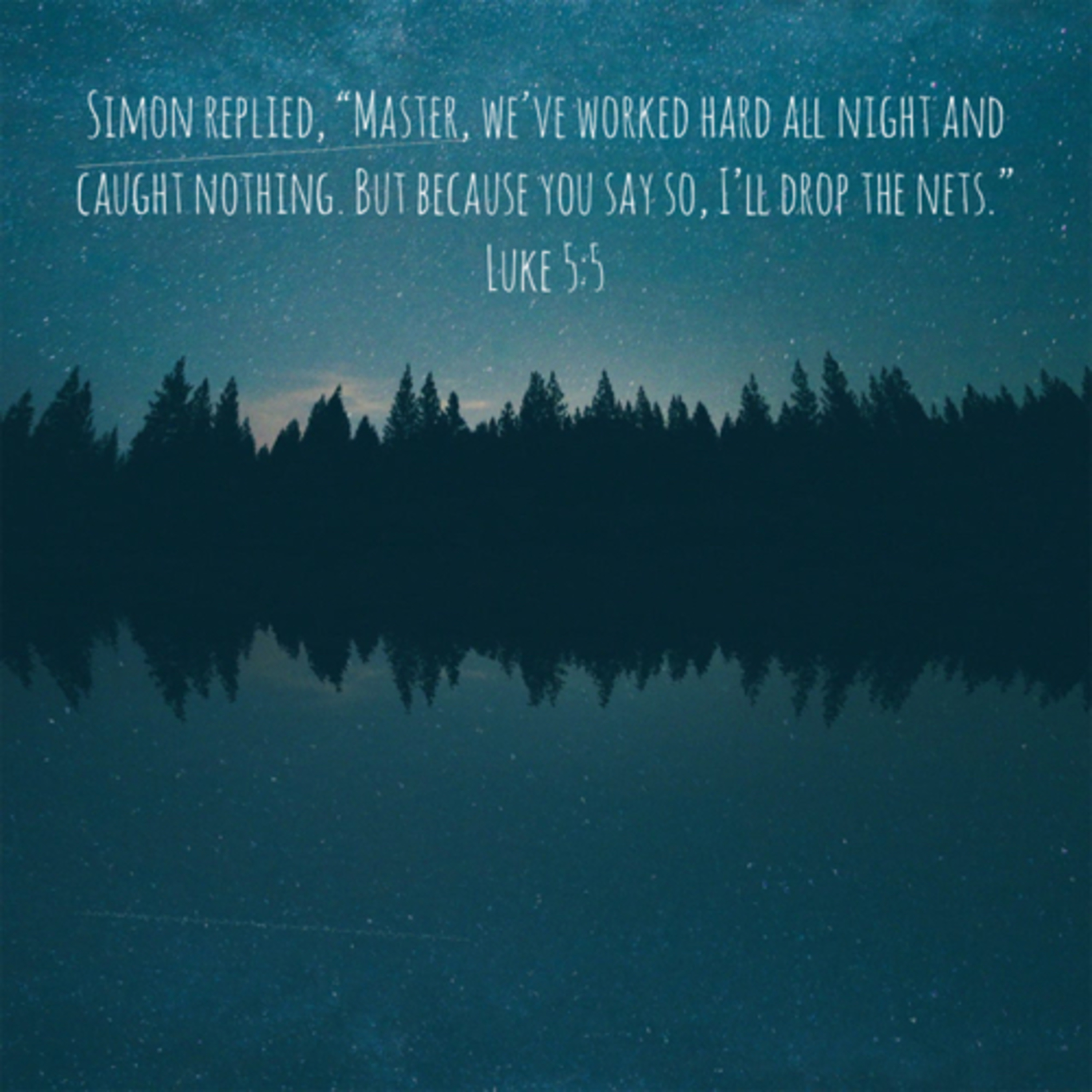 Simon replied, “Master, we’ve worked hard all night and caught nothing. But because you say so, I’ll drop the nets.”