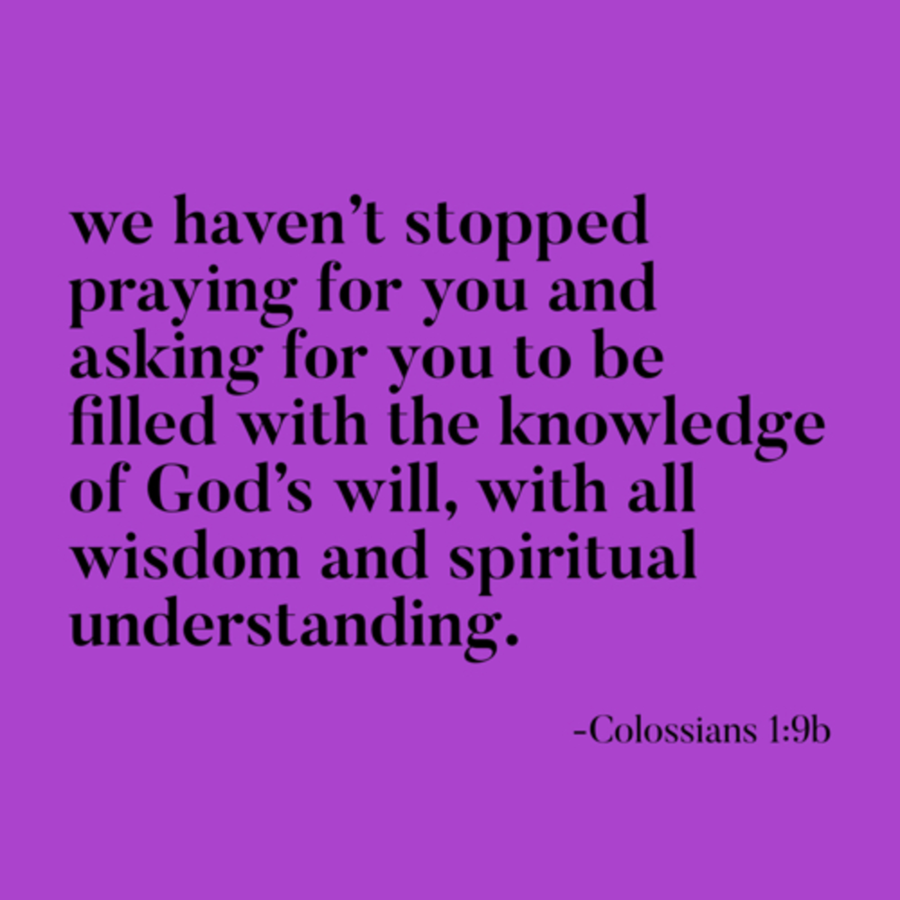 we haven’t stopped praying for you and asking for you to be filled with the knowledge of God’s will, with all wisdom and spiritual understanding.