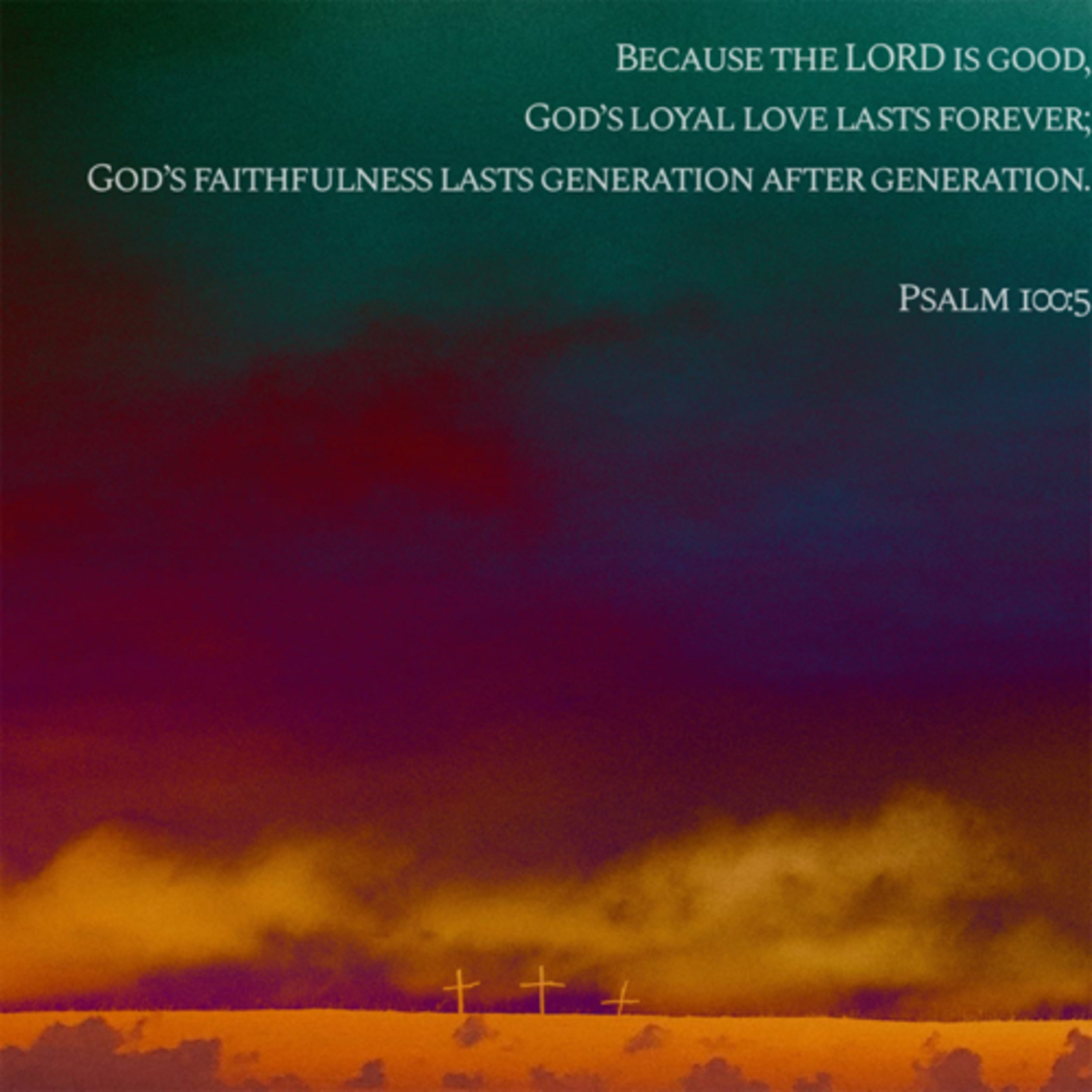Because the LORD is good, God’s loyal love lasts forever; God’s faithfulness lasts generation after generation.