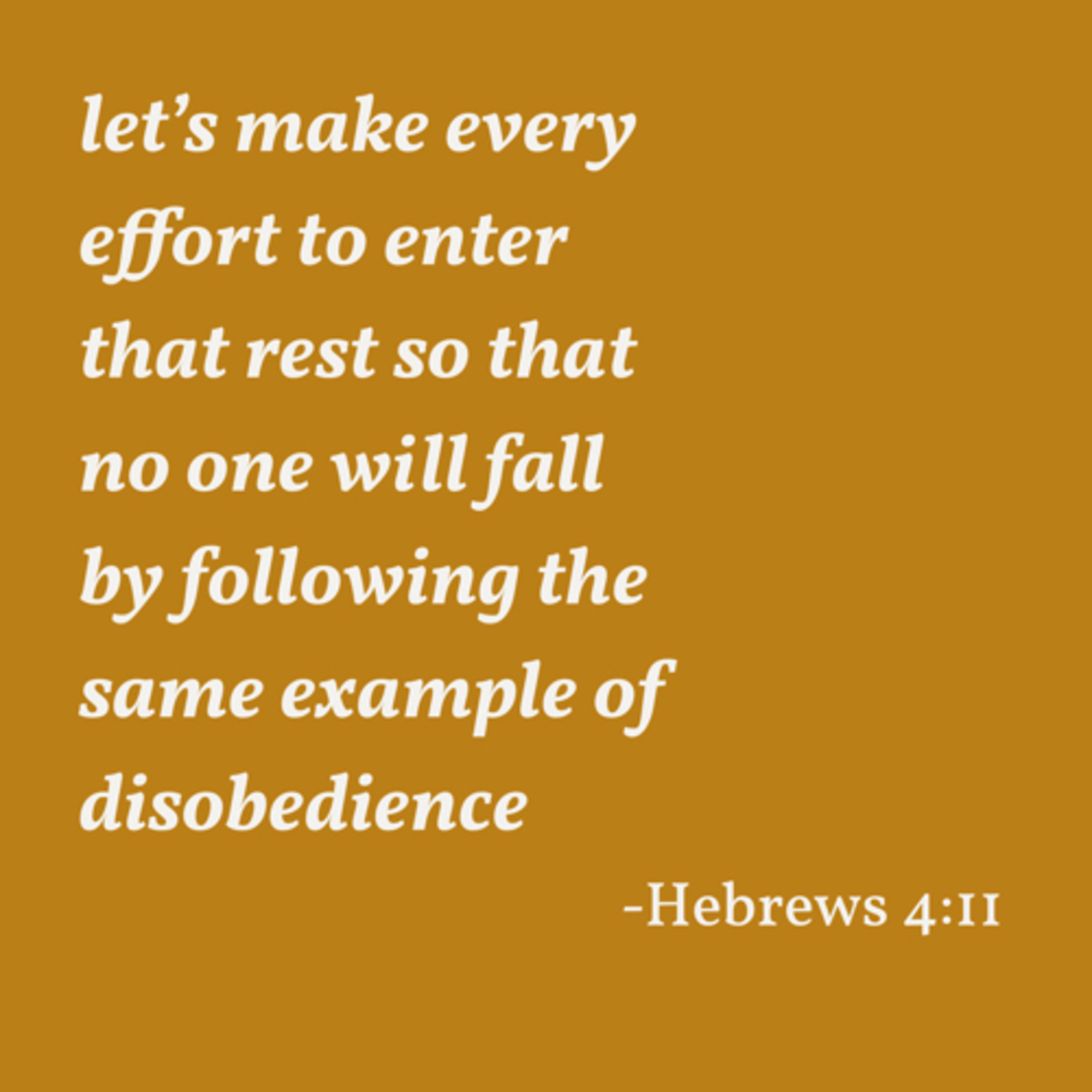 let’s make every effort to enter that rest so that no one will fall by following the same example of disobedience