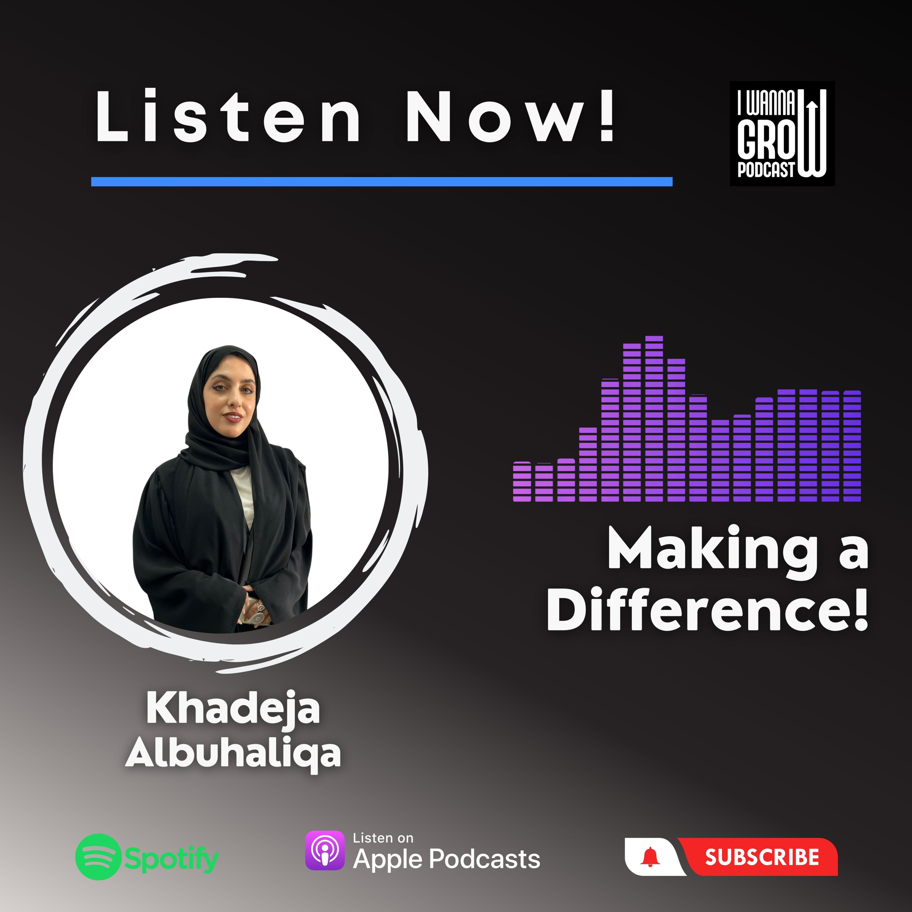 Don't miss the opportunity to be uplifted by Khadeja Albuhaliqa's extraordinary journey. Tune in to the "I Wanna Grow" Podcast as we celebrate individuals who are making a difference and inspiring us all to grow.