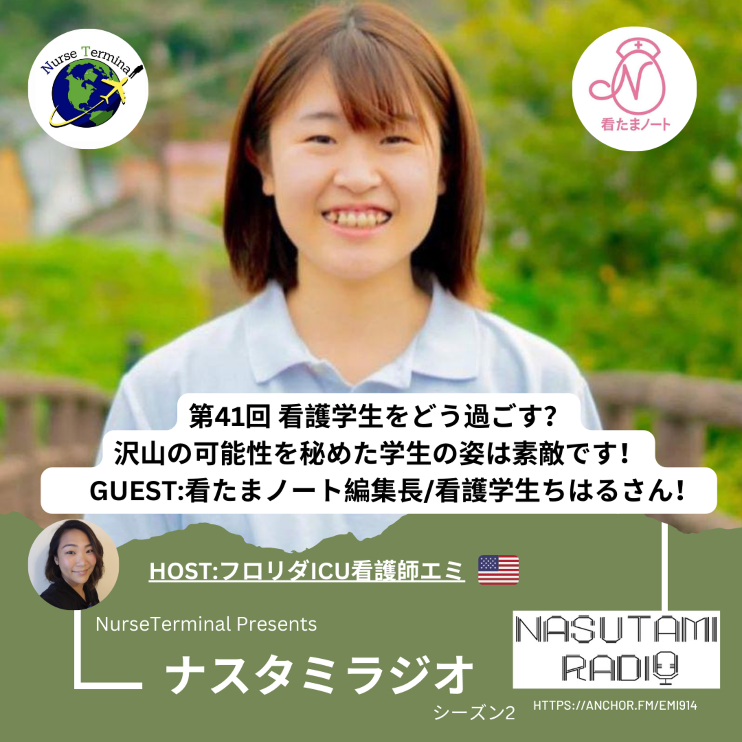 ナスタミラジオ第41回は、看たま編集長、そして看護学生のちはるさんをお迎えしてお届けします。ナスタミと看たまはナスタミが発足した当初からナスタミオープンキャンパスを通して交流がありました。私も始めてナスタミの活動に参加させてもらったのがオープンキャンパスでした。
