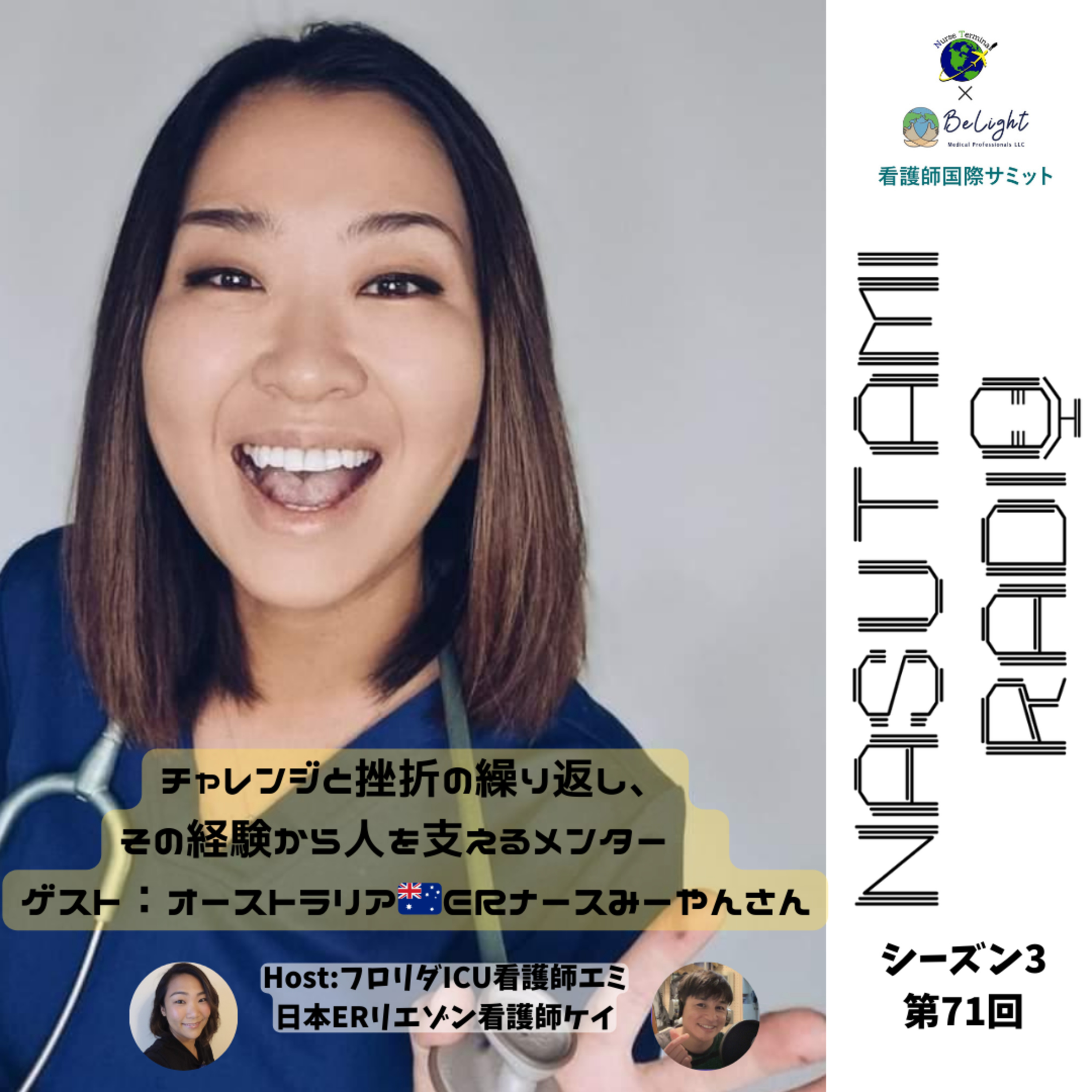 ナスタミラジオ第71回は、オーストラリアでERナースとして、そしてメンターとしても活動するみーやんさんをお迎えしてお届けします。