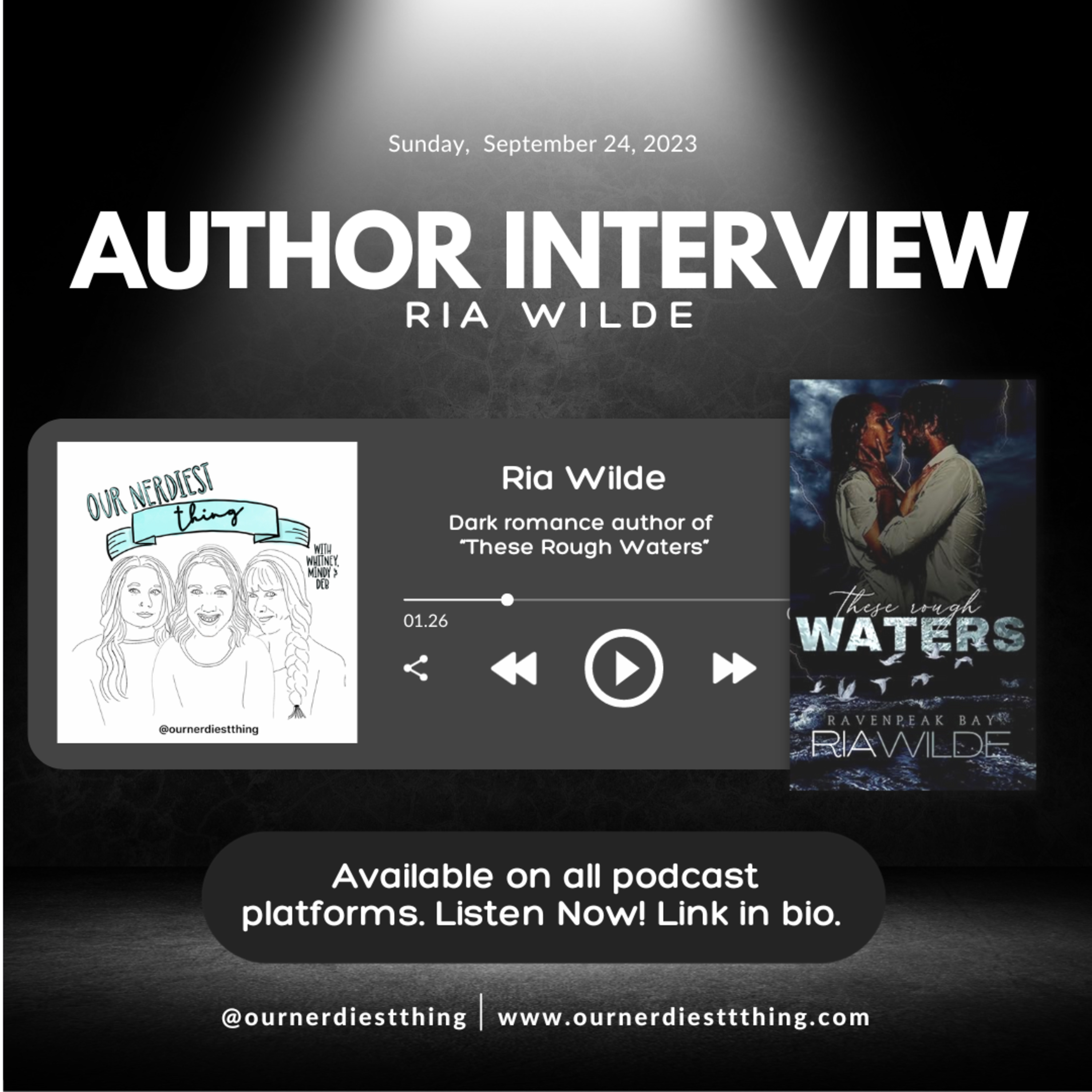 Listen in as we chat more about Ria’s newest work, “These Rough Waters”, what they are currently reading, and all of their nerdiest things. And be sure to follow them at @authorriawilde