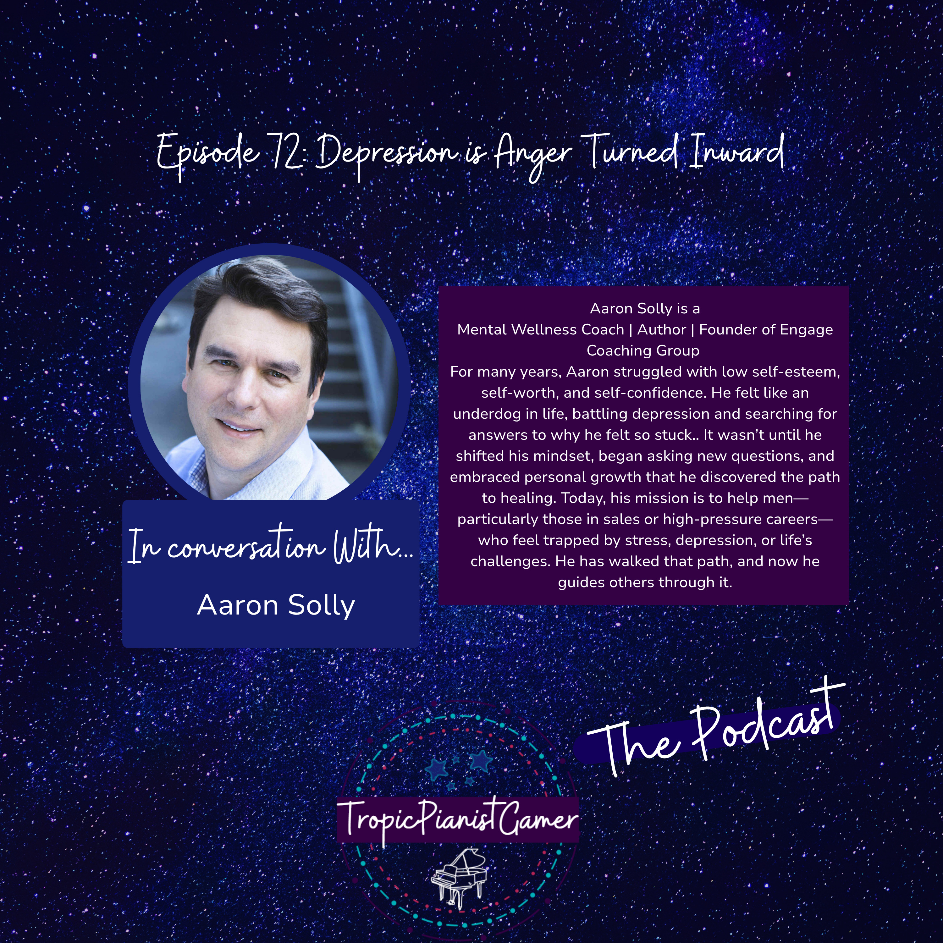 Aaron SollyMental Wellness Coach | Author | Founder of Engage Coaching GroupFor many years, Aaron struggled with low self-esteem, self-worth, and self-confidence. He felt like an underdog in life, battling depression and searching for answers to why he felt so stuck..