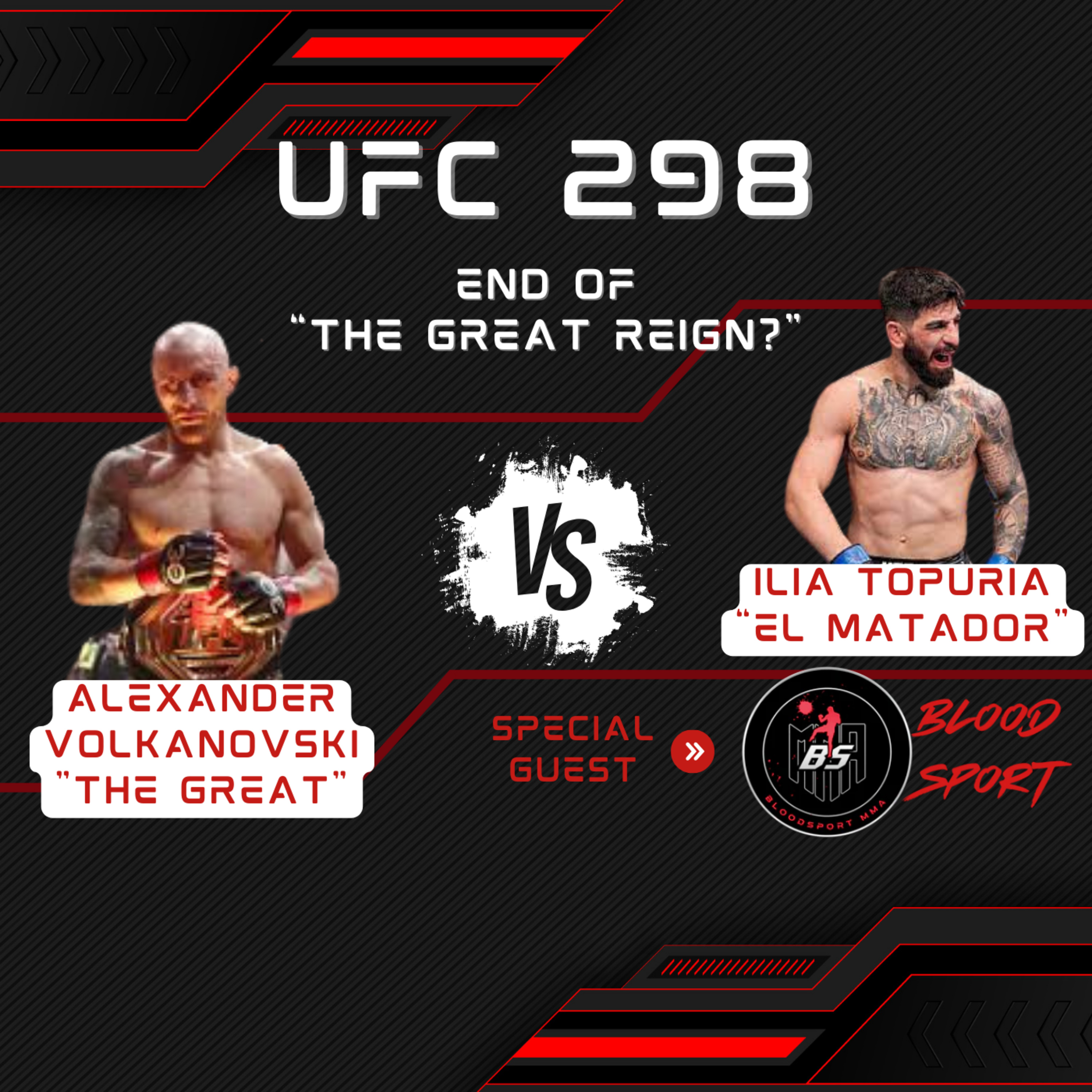 We break down the first truly stacked card of the year, UFC 298. Joining us this episode is the one and only BloodSportMMA, an incredibly devoted and educated MMA content creator from Switzerland. We break down Ilia Topuria's chances vs The Great Alexander Volkanovski, and the other great fights from the card. Thanks for watching!