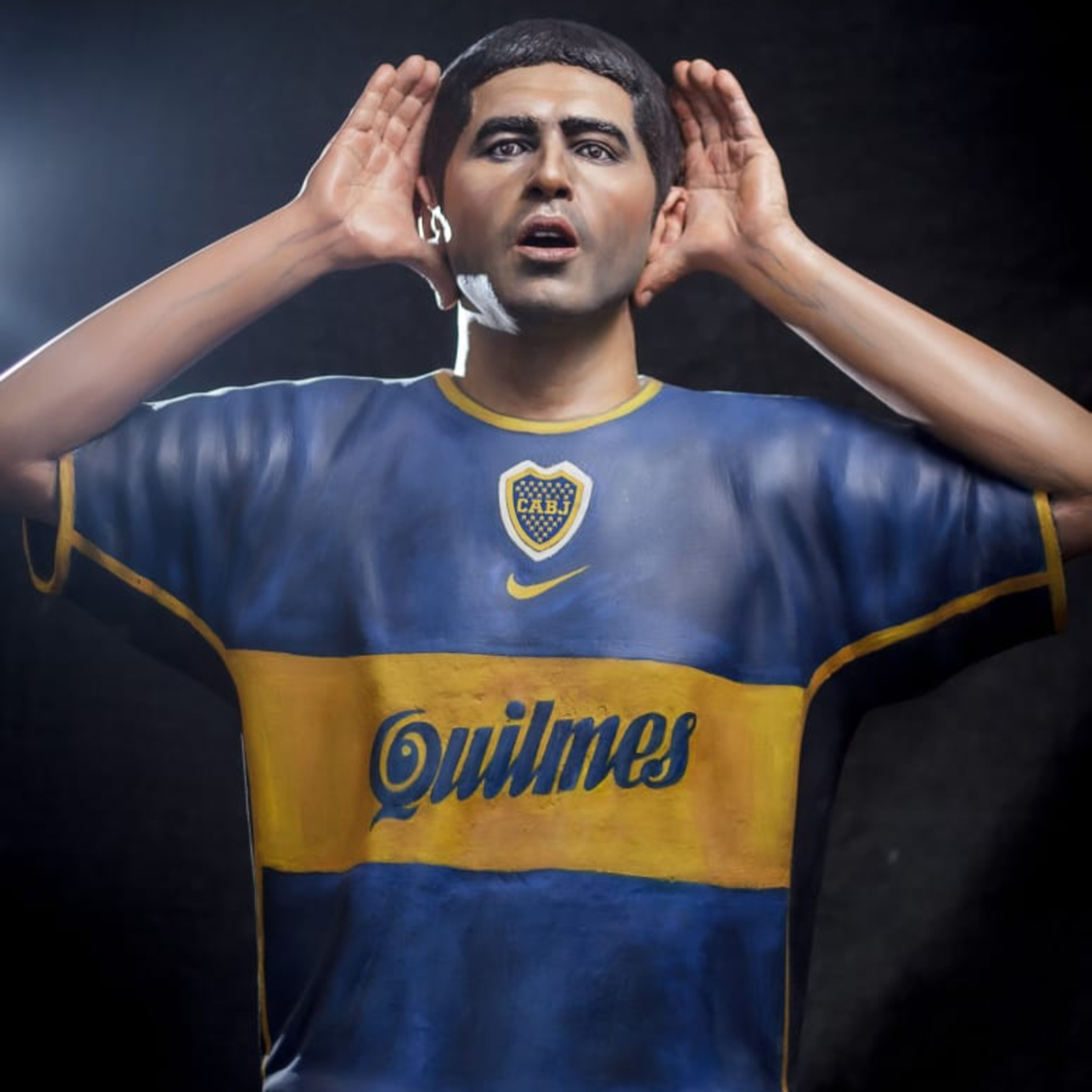 Charlamos con el artista plástico Fernando Pugliese, que hizo una estatúa de Juan Román Riquelme recreando el festejo del Topo Gigio. La misma está hecha en tamaño real, pesa unos 50 kilos y será exhibida en Gral. Las Heras, provincia de Santa Cruz. "Me llamó el Intendente de Las Heras y me dijo si podía hacer una estatua de Román. La imagen que primero se viene a la mente de él es la del Topo Gigio".