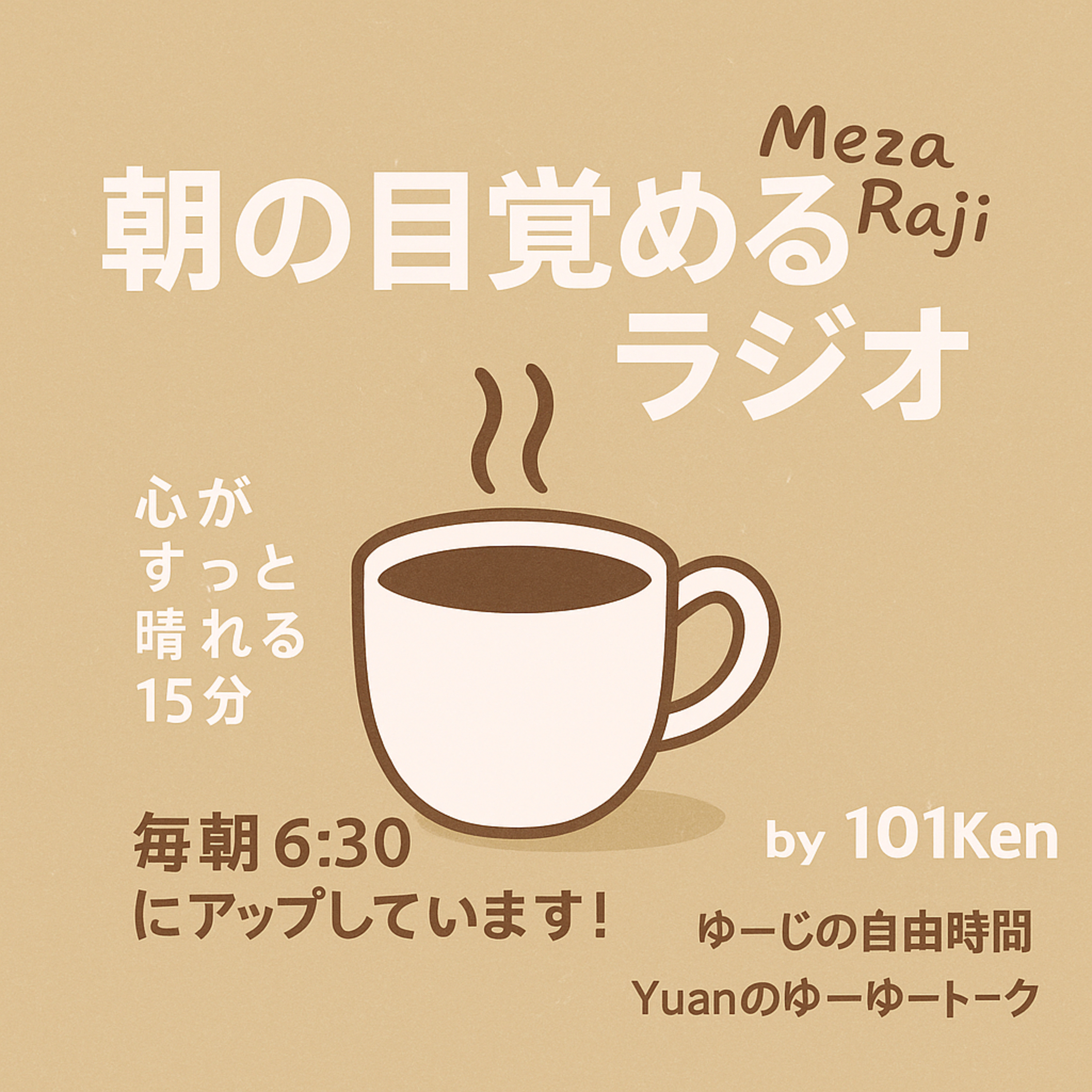 毎朝6:30に配信。101Kenが朝の準備中や通勤・通学途中に必聴のおもしろエピソードをお届け!日曜日には、ゆーじさんがリラックスできるトークをお届け!不定期でYuanさんが、美容や海外など多彩なテーマでトークをお届け!
