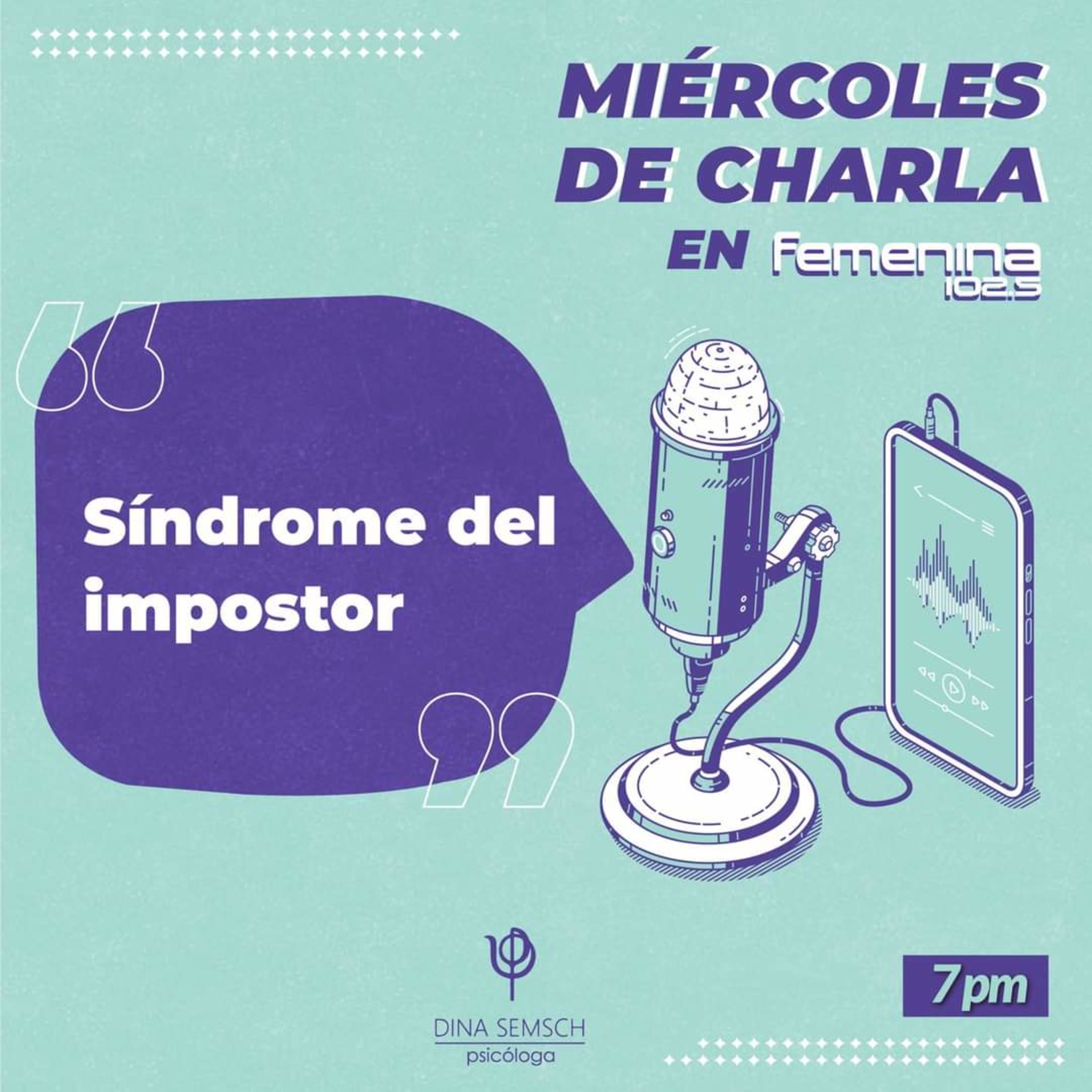 Hoy miércoles vamos con 🎤Miércoles de charla con Dina Semsch🎧, con el tema "Síndrome del Impostor", a las 7 pm, por Radio Femenina (102.5 fm).