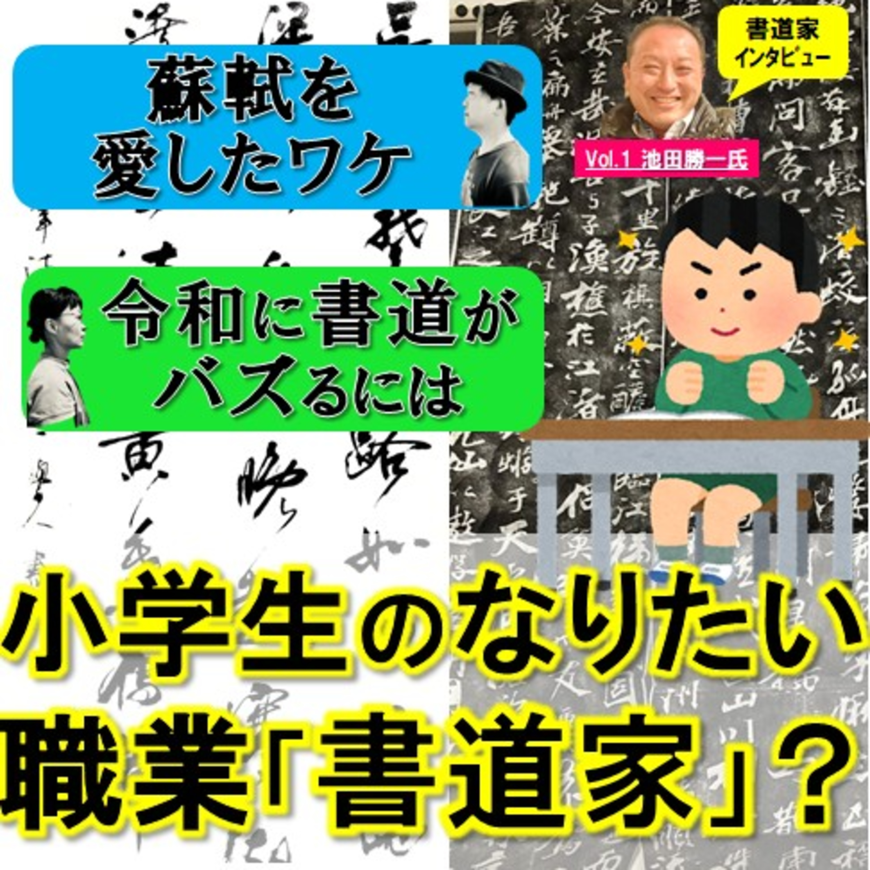 書道家の人生を聞く、新企画です。初回のゲストは池田勝一氏。書道一家に生まれ、スポコン漫画のような書道ストーリーを歩む。古典に魅せられた仙人と思われている人物は、ビールをよく飲む気さくな人でした。後編は、古典大好き池田氏のイチ押し「蘇軾」にたどり着くまで、池田氏が今後目指していきたい方向、書道は今後どうあるべきか!?など熱い話を展開。