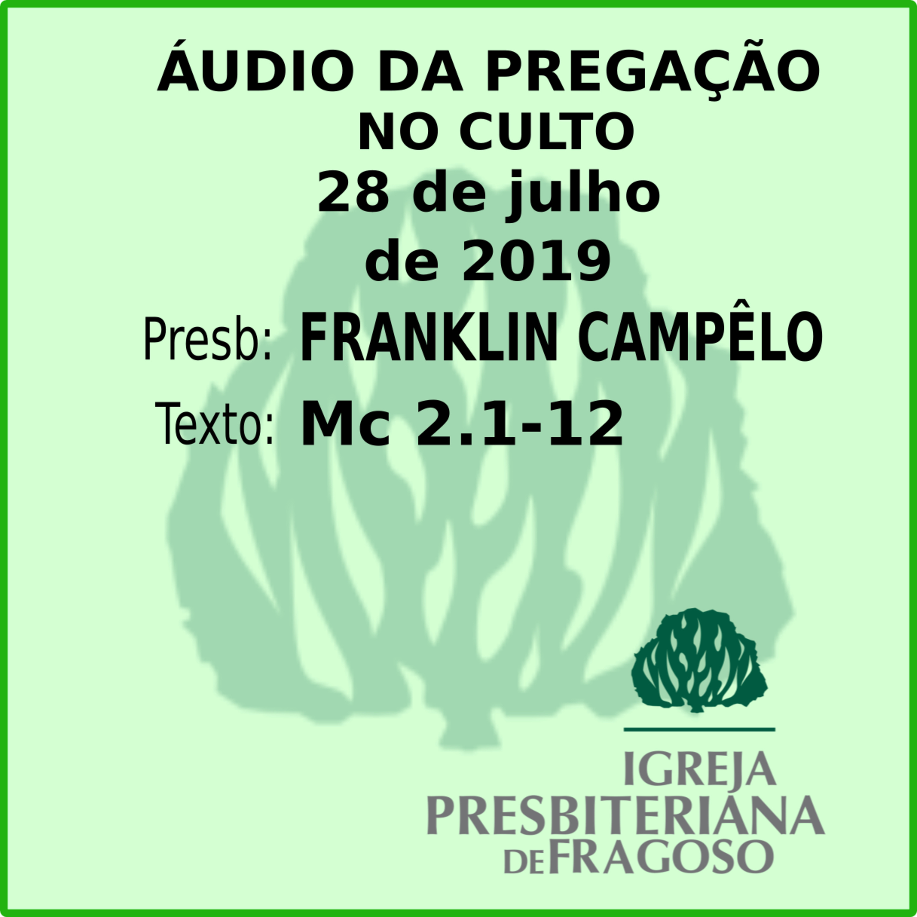 Message preached July 28, 2019. Based on the text of the Gospel Book of Jesus according to Mark chapter 2, verses 1 through 12. A word from the Lord to reflect on the value of the kingdom of God in our lives. Audio in Portuguese.