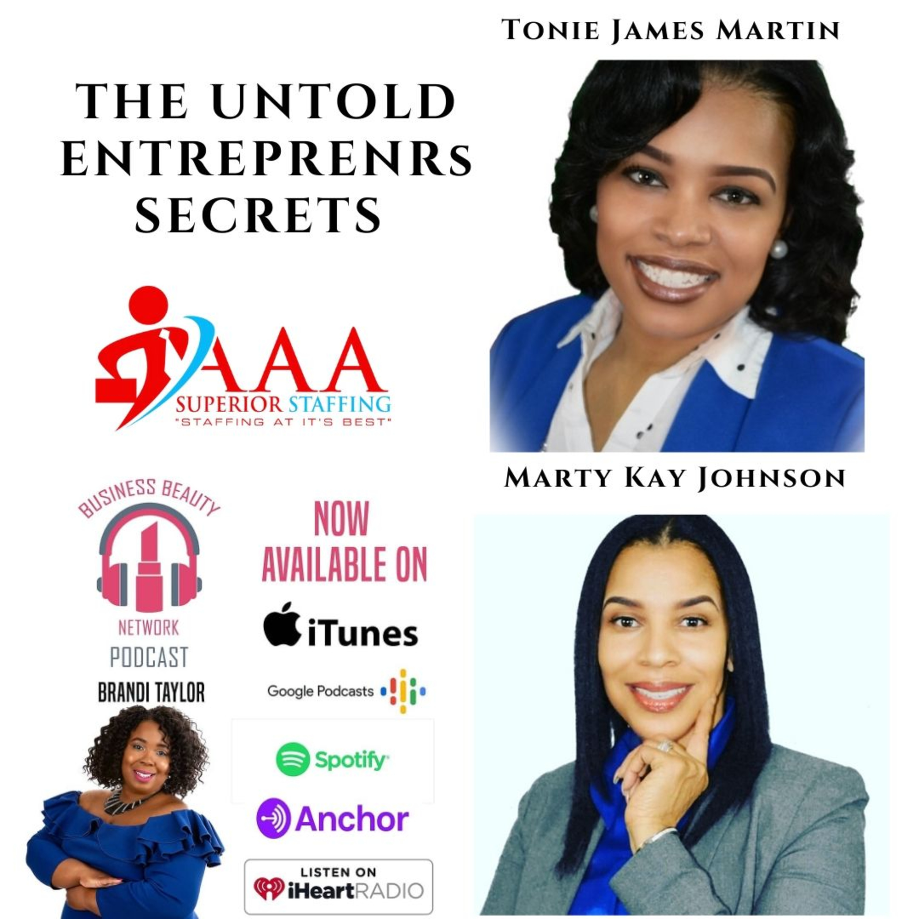 Tonie James Martin and Marty Kay Johnson are the owners of AAA Superior Staffing. This mother and daughter team shared their entrepreneurial journey. We discuss their path to success in their business. They have taken their experience in staffing and created a business that helps others. We talked about building capital and multiple streams of income. Marty says "Instead of asking for capital be your capital." They have an event on January 18, 2020 where they will be sharing the untold secrets to becoming a successful entrepreneur THE UNTOLD ENTREPRENEURS SECRETS 2020.