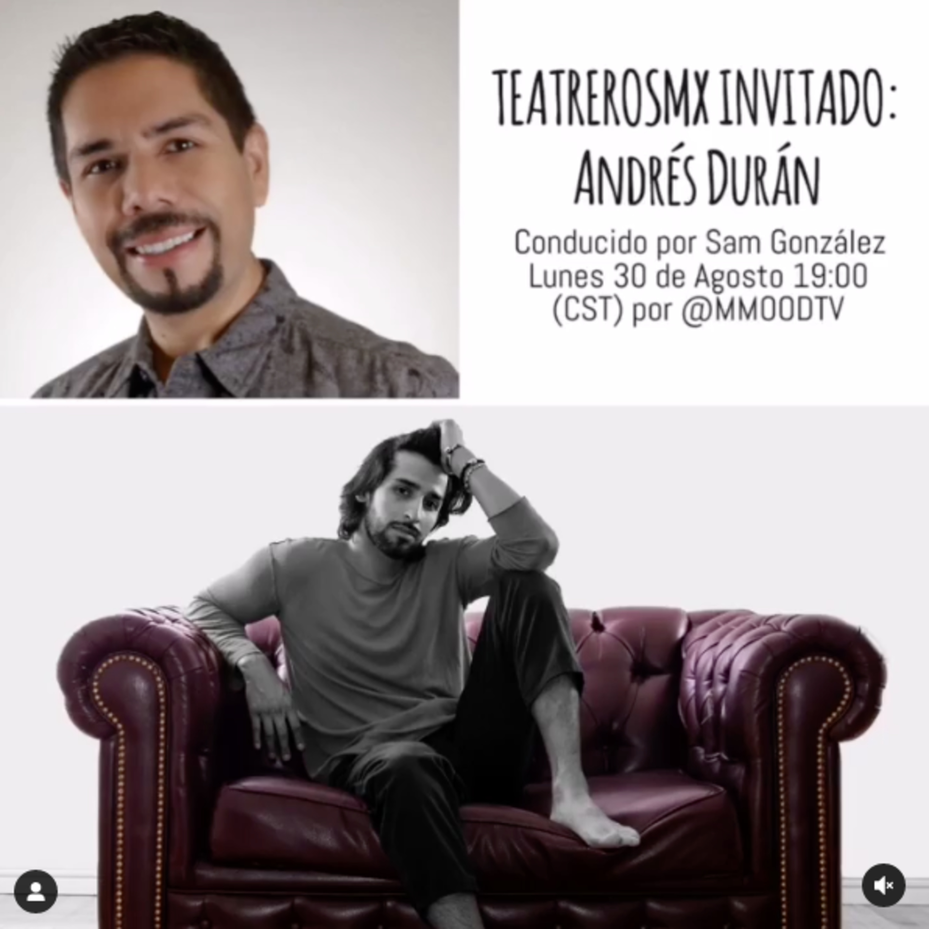 Lunes de TeatrerosMX conducido por Sam González que tiene de invitado a Andrés Durán, SINTONIZANOS en punto de las 19:00 HRS.