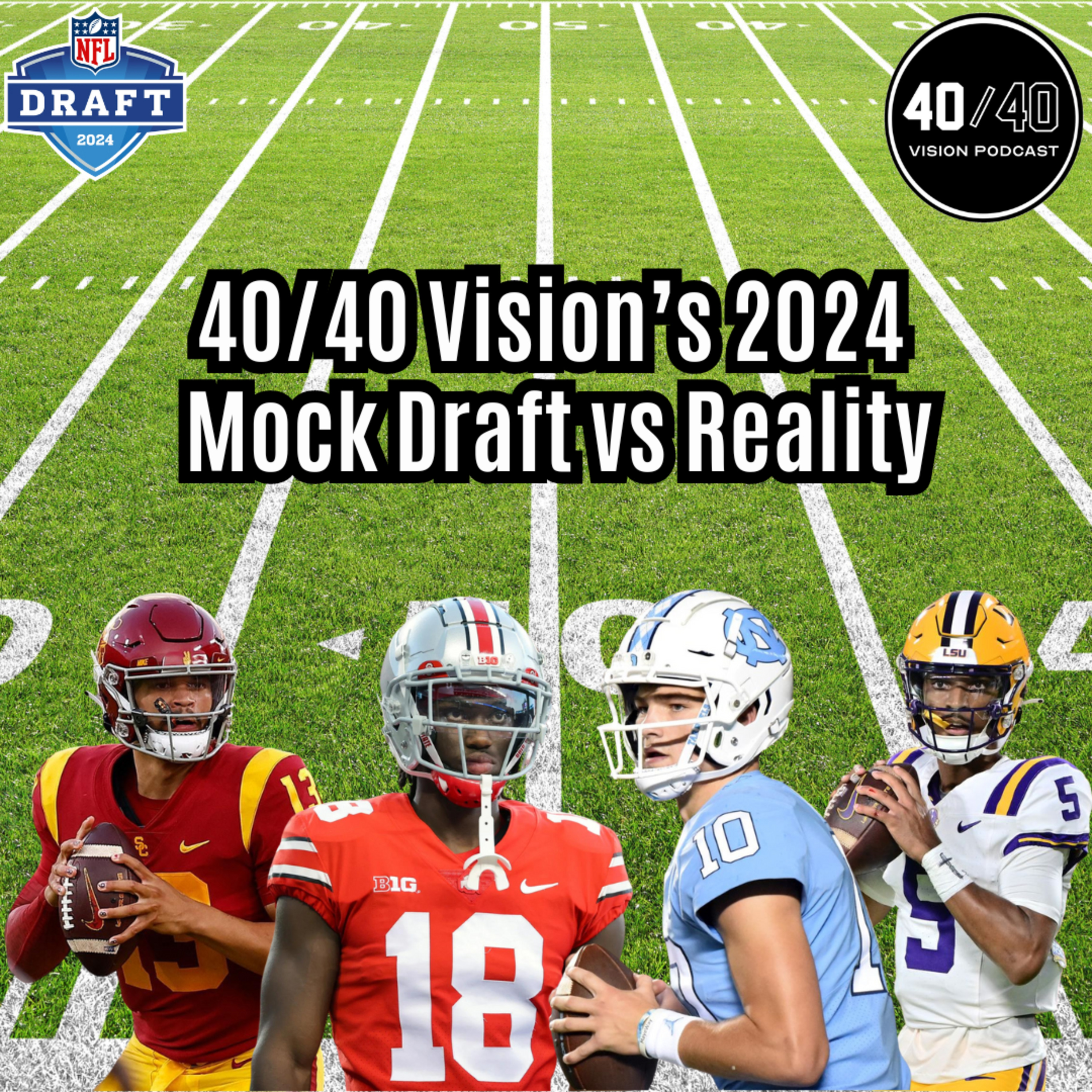 In this episode of The 40/40 Vision Podcast, we review our mock draft of the first round of the 2024 NFL Draft and compare it to the way the draft actually played out.