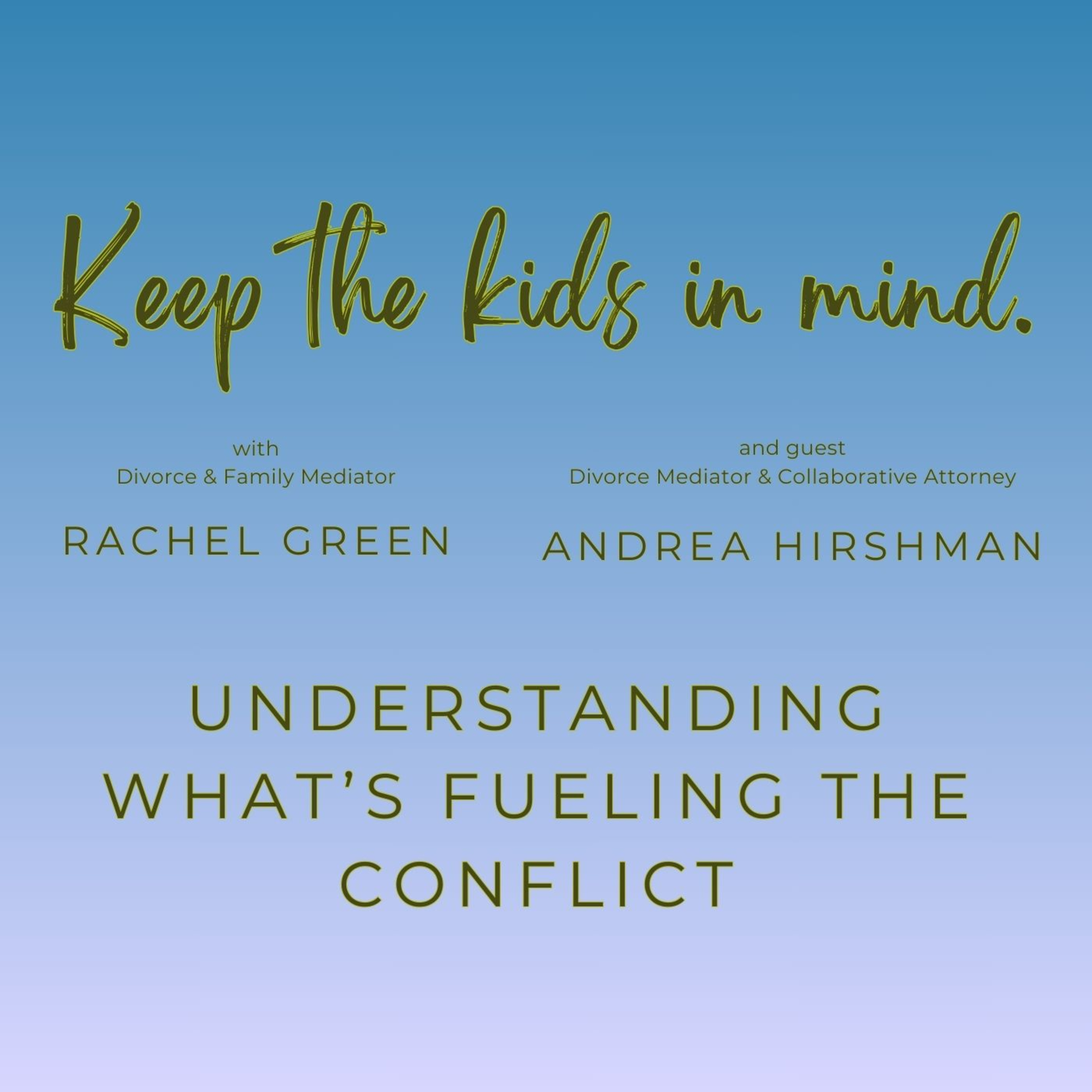 In every episode of Keep the Kids in Mind, Rachel Green, a family, and divorce mediator with over 25 years of experience, chats with other industry professionals to help people who are going through a divorce or separation with children involved. How can divorcing couples keep the kids in mind? What are the common pitfalls for divorcing couples with children and how can people protect children from the conflict, so that they come through whole and healthy? What are the (surprising) benefits to children of divorce? How can the parents move into a restructured family with 2 homes? This podcast explores these questions and more.