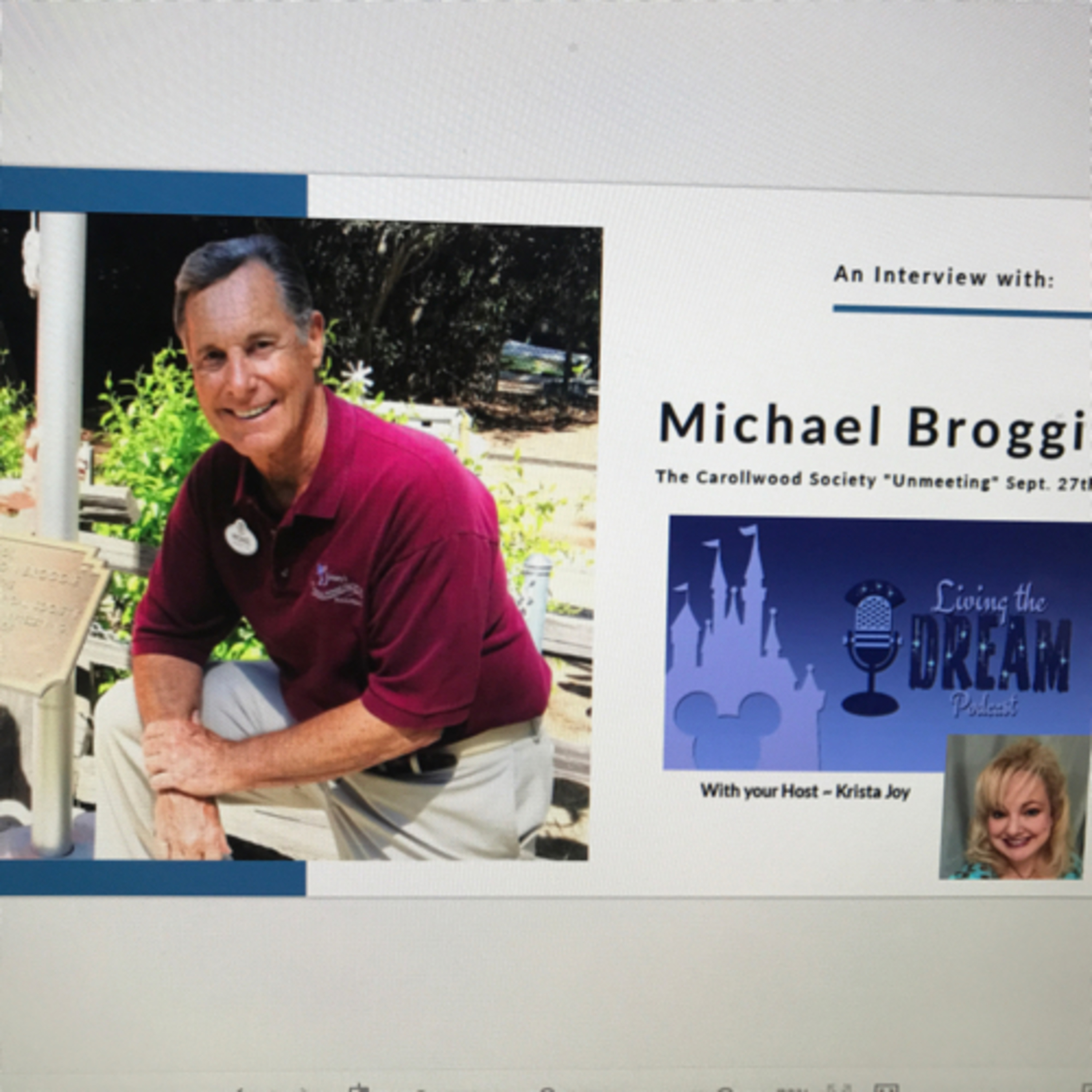 Michael Broggie is an authority on the life and legacy of Walt Disney and the global empire he inspired. As a public speaker, he has toured the country speaking on his first-person experiences with Walt Disney and many of the Disney Legends, including his father, Roger E. Broggie, who was selected by Walt Disney to be his first Imagineer and the head of Walt Disney Studio's machine shop. As a small child, Michael Broggie got to ride on Walt Disney's backyard 1/8-scale model Carolwood Pacific Railroad, which his father helped to build. Carolwood Society Founder, Michael Broggie and “Heart and Heritage” honoree, Tony Baxter hosted the annual UnMeeting the morning of Friday, September 27, 2019 at the Disney Springs AMC 24 theater at the Walt Disney World Resort! Get more information on the event and how you can join the next one at https://carolwood.com