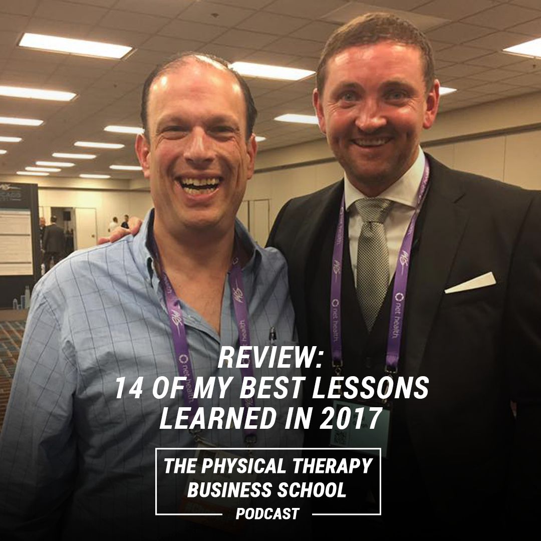 It is just about the end of 2017 and so I decided to spend a full day thinking and reflecting about what I had learned in 2017. I asked my self this growth question: “What do I know more about now that I did not know 12 months ago?” ...and this podcast episode is what I came up with. On this one I cover what I consider to be the most important lessons that I have learned either my self directly - or through the clients that I work with in my Mastermind program who own Physical Therapy Businesses all over the world.
