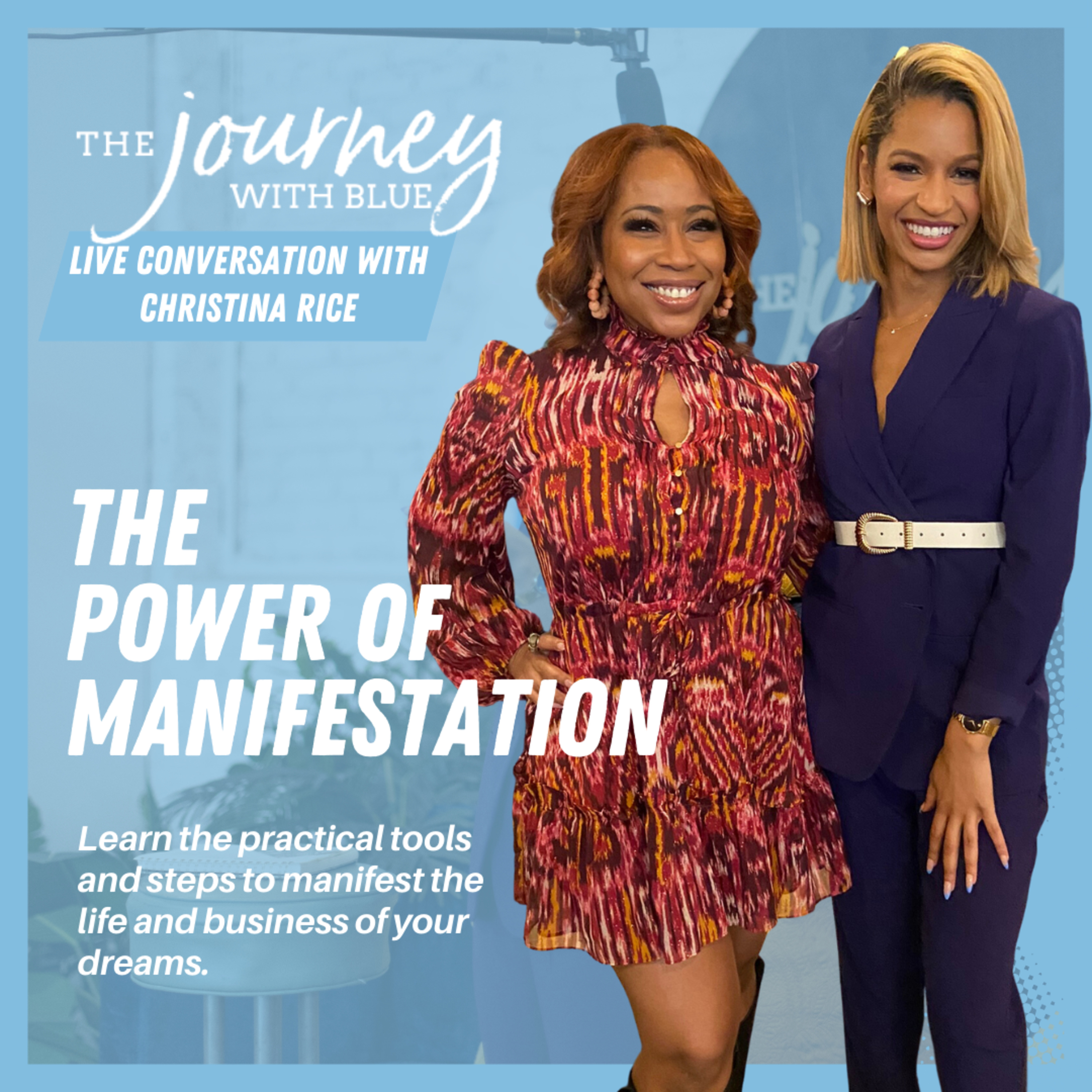 The Journey with Blue LIVE Power of Manifestation and Vision Book Party in Atlanta, GA was AMAZING and just what we needed to bring in the new year. Manifestation queen and founder of OmNoire, Christina Rice, joined me in conversation to share how we could get clear on our dreams, uncover what's keeping us from our possibilities and the steps necessary to manifest powerfully. After the conversation, we had an ultimate vision book party to claim what you want to create in every area of your life and business in the new year. You had to be in the room.