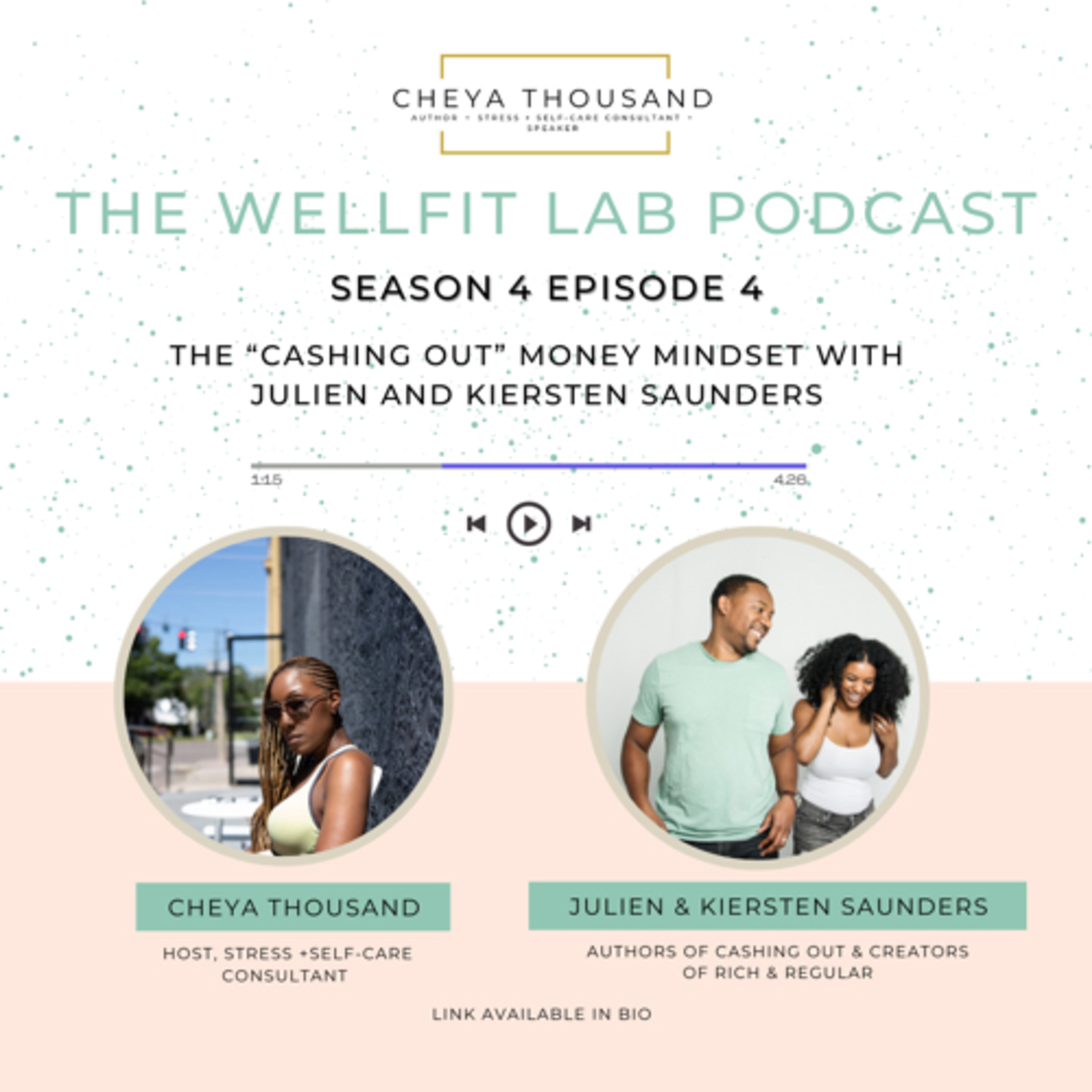 Today I am in the lab with the author’s of Cashing Out: Win the Wealth Game By Walking Away, Julien & Kiersten Saunders. Also known as @richandregular on Instagram. We are digging into their book and how to shift your money mindset. Grab their book today and learn more about how to start Cashing Out! Like, Share, Subscribe & Comment!! Follow me @cheyathousand on all platforms for tips to lower your stress and shift your mindset around personal wellness.
