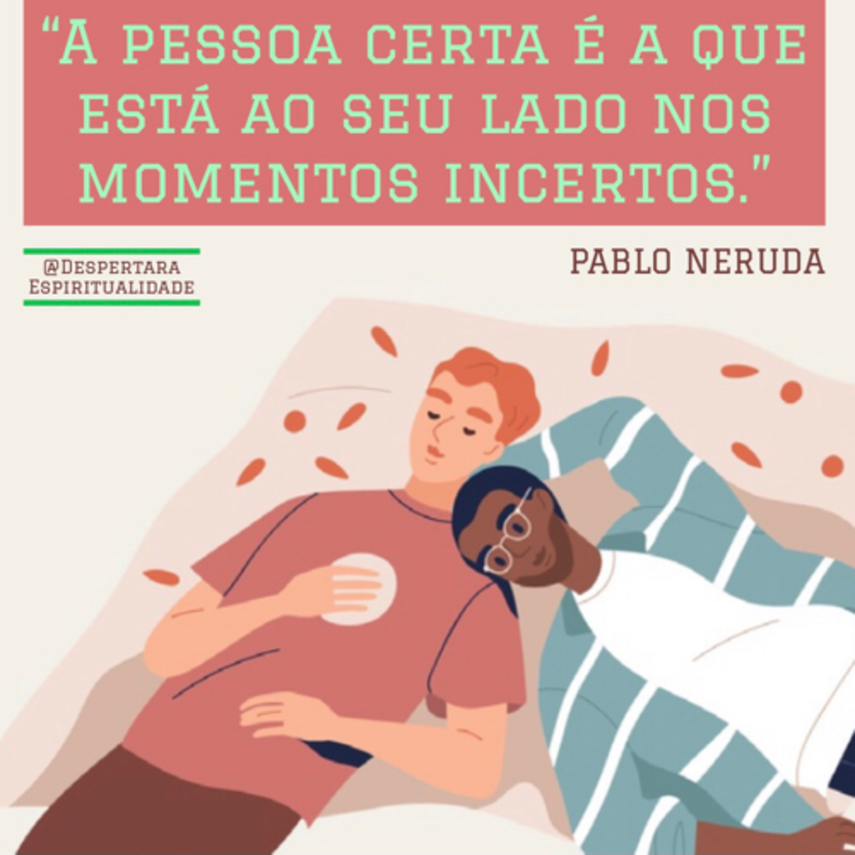 A pessoa certa é a que está ao seu lado nas horas incertas. (Pablo Neruda)