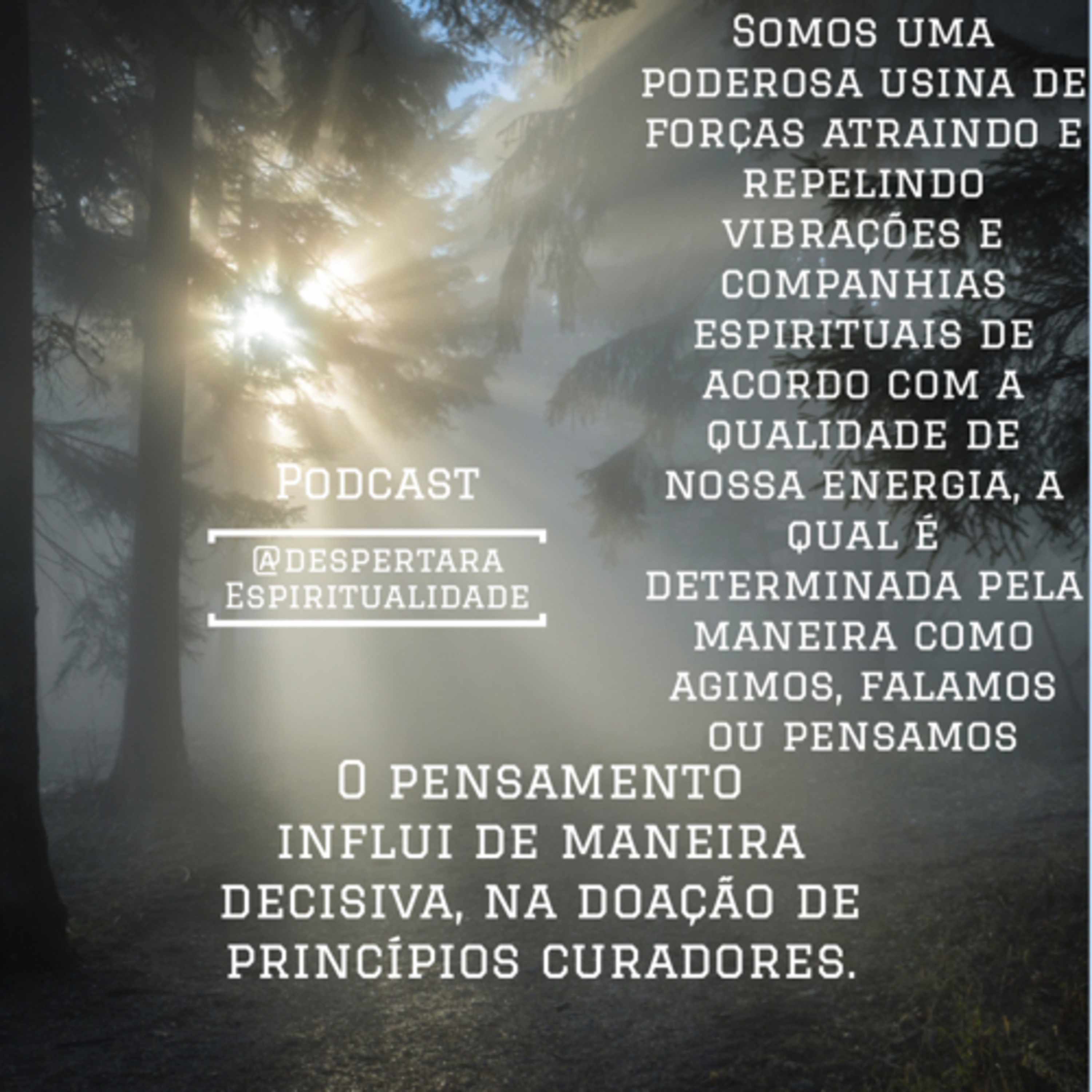 Somos uma poderosa usina de forças atraindo e repelindo vibrações e companhias espirituais de acordo com a qualidade de nossa energia, a qual é determinada pela maneira como agimos, falamos ou pensamos. José Carlos De Lucca