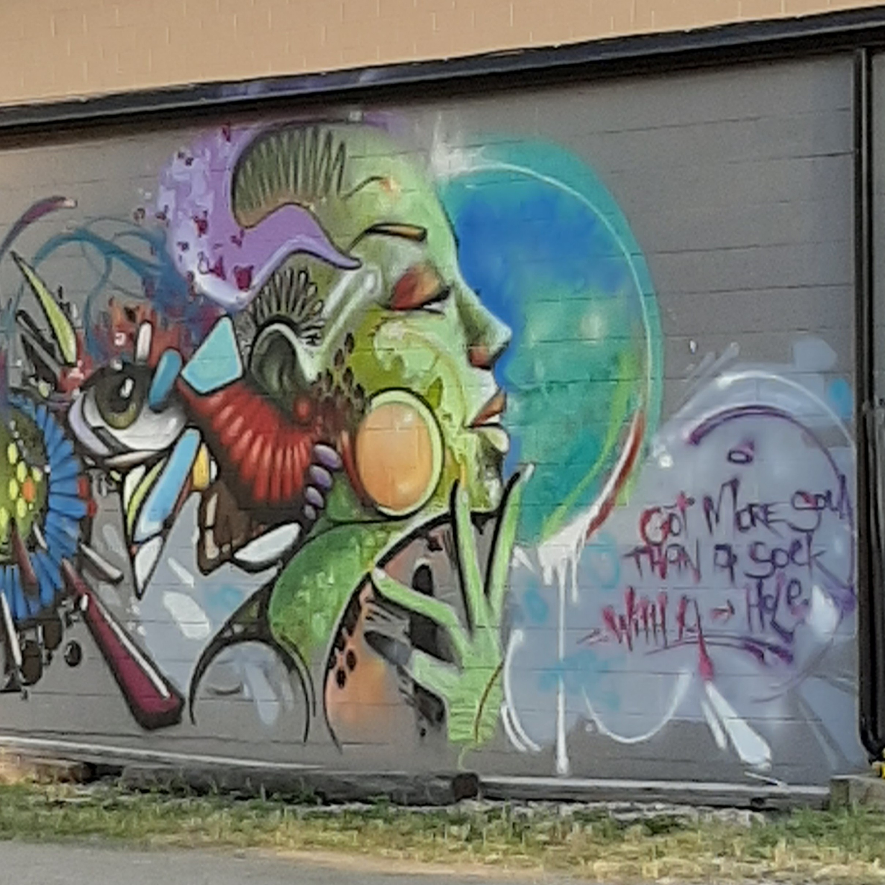 I sit down and talk about being cheap and gypsy remedies. Seggys, Tigermail and a clip of music by Randy B That mural says: "Got more soul than a sock with a hole"