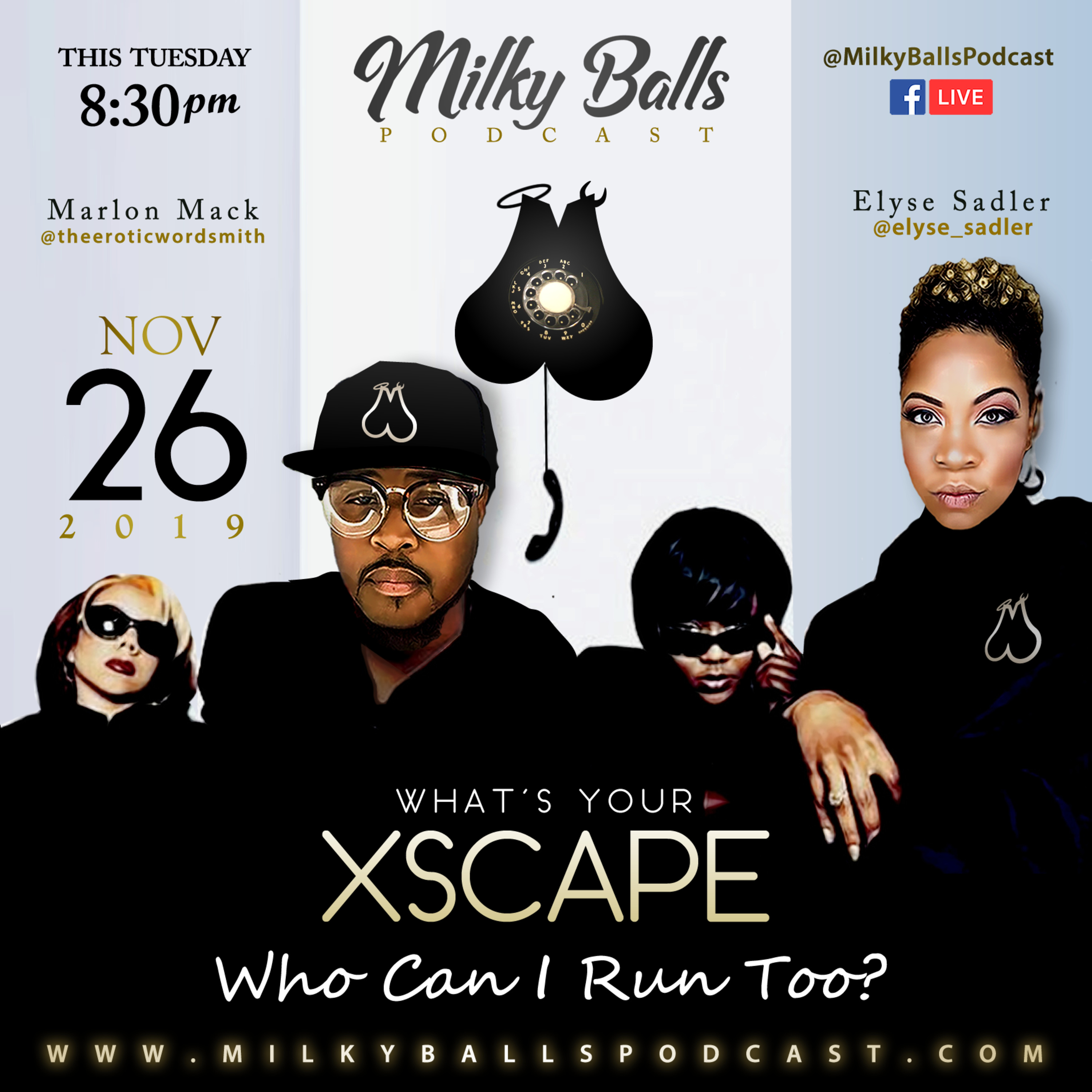 Who can I run to...to share this empty space??? Who can I run to when I need love, advice, to vent, to flirt, to f#ck, but most importantly, to Escape!!! Some run to the heels from which cometh their help, some run...their mouths to anyone willing to listen. Is your vibe strong cuz your tribe strong??? Or is your vibe wrong cuz your excuses long??? We talk the pros and cons of inviting others into your life of like, love and everything in between. For the Balls, we talk about the art of “eating/drinking” from your partner’s feast as we approach this Thanksgiving.