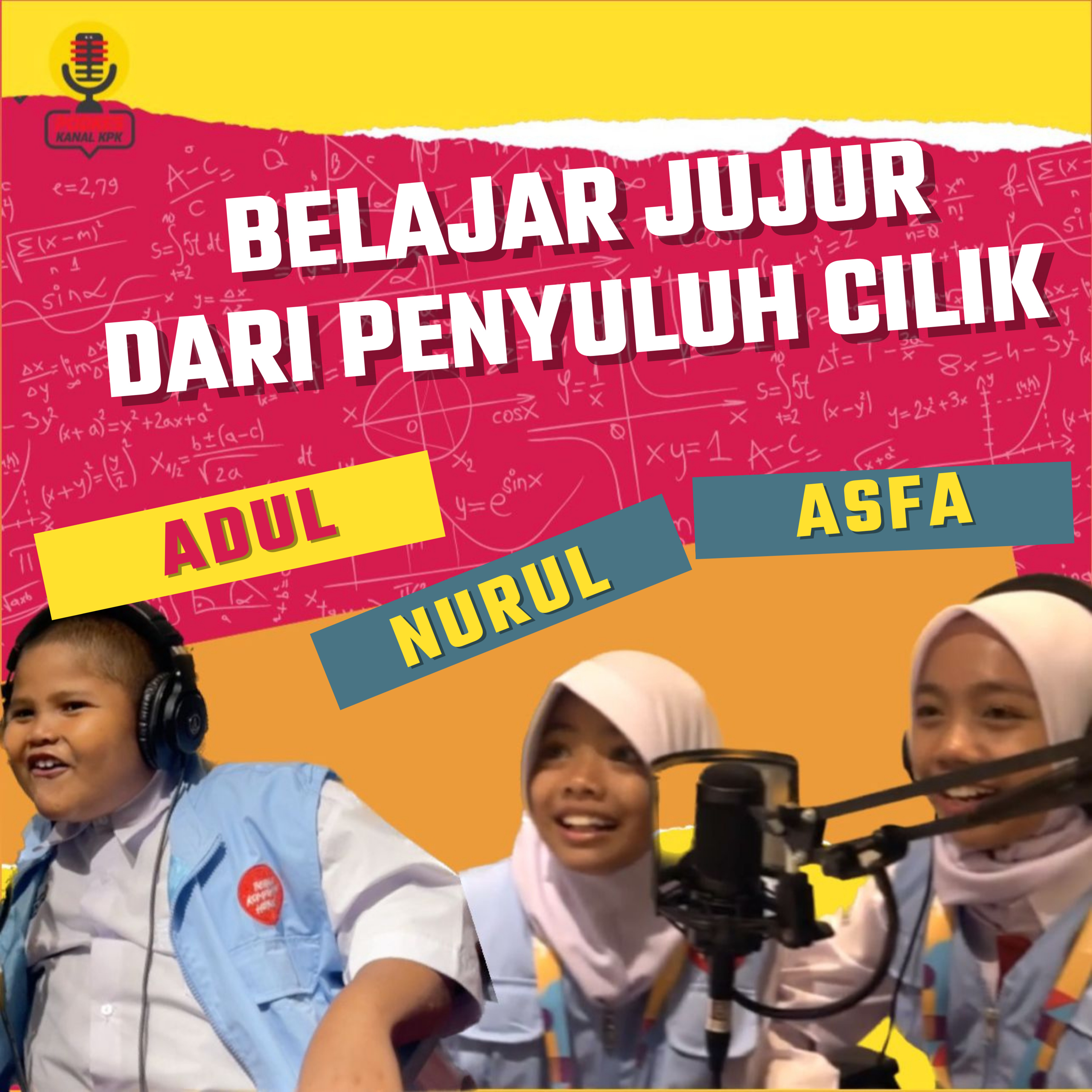 KPK selalu berupaya menciptakan inovasi–inovasi untuk menebarkan pentingnya nilai-nilai integritas, salah satunya melalui kehadiran Penyuluh Cilik. Dalam podkes kali ini, #KawanAksi bisa mendengar pengalaman tiga penyuluh cilik yaitu Asfa Azita Hasti (6 SD), Nurul Maulani (4 SD), dan Abdulloh Syafi’i (2 SD). Mereka berkesempatan ‘menegur’ dengan gaya khas bocah cilik kepada para pejabat negara yang hadir pada acara Hari Antikorupsi Sedunia 9 Desember tahun 2022 lalu.