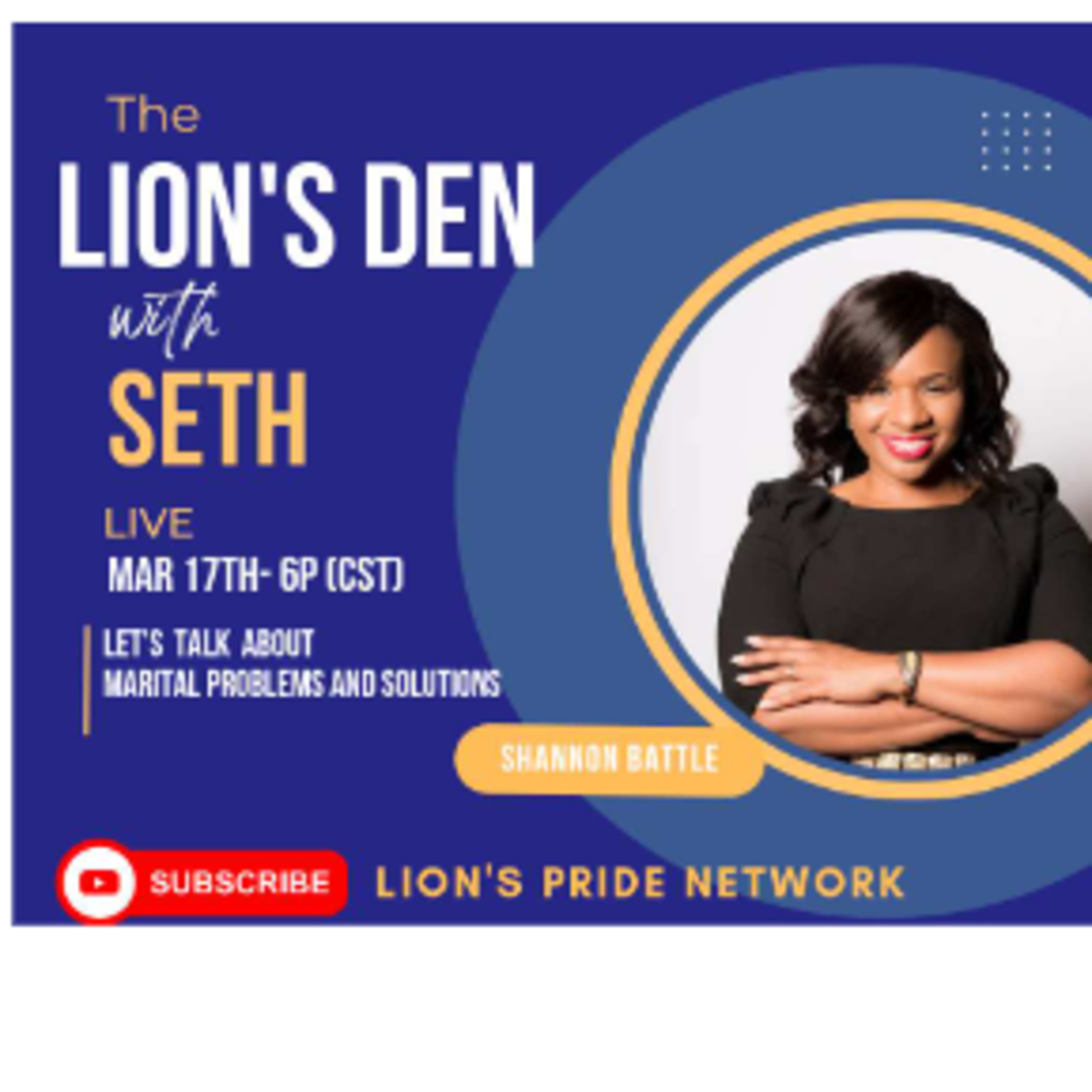 Tune in on this episode to 'The Lion's Den with Seth' for a powerful conversation you wouldn't have wanted to miss. We were thrilled to announce that our special guest was none other than Shannon Battle, a renowned expert on marital problems.