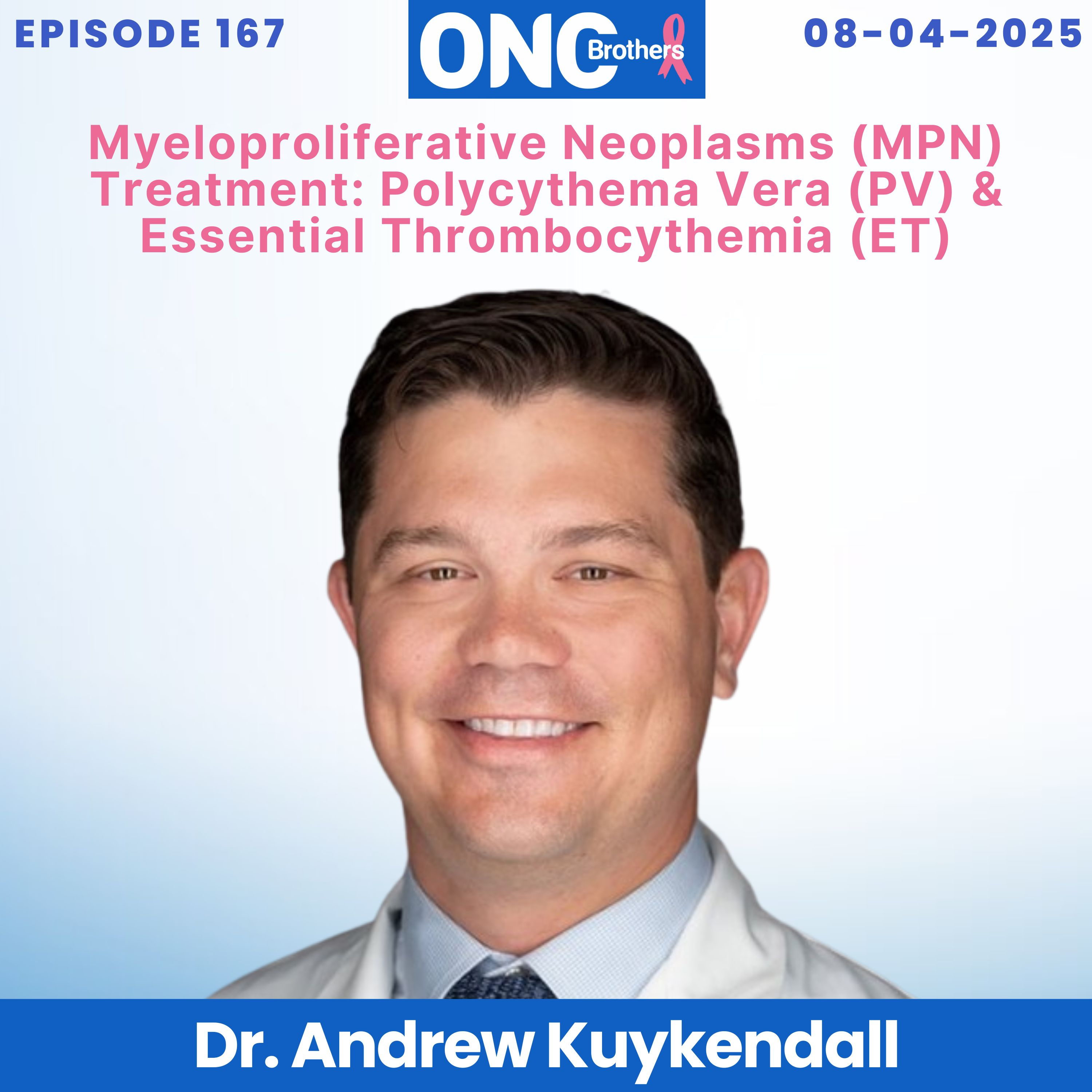 In this episode of the Oncology Brothers podcast, Drs. Rahul and Rohit Gosain dived deep into the world of myeloproliferative neoplasms (MPNs), focusing specifically on polycythemia vera (PV) and essential thrombocythemia (ET). They are joined by Dr. Andrew Kuykendall, a hematologist from Moffitt Cancer Center, who shared his expertise on the latest treatment paradigms and risk stratification strategies for these conditions.