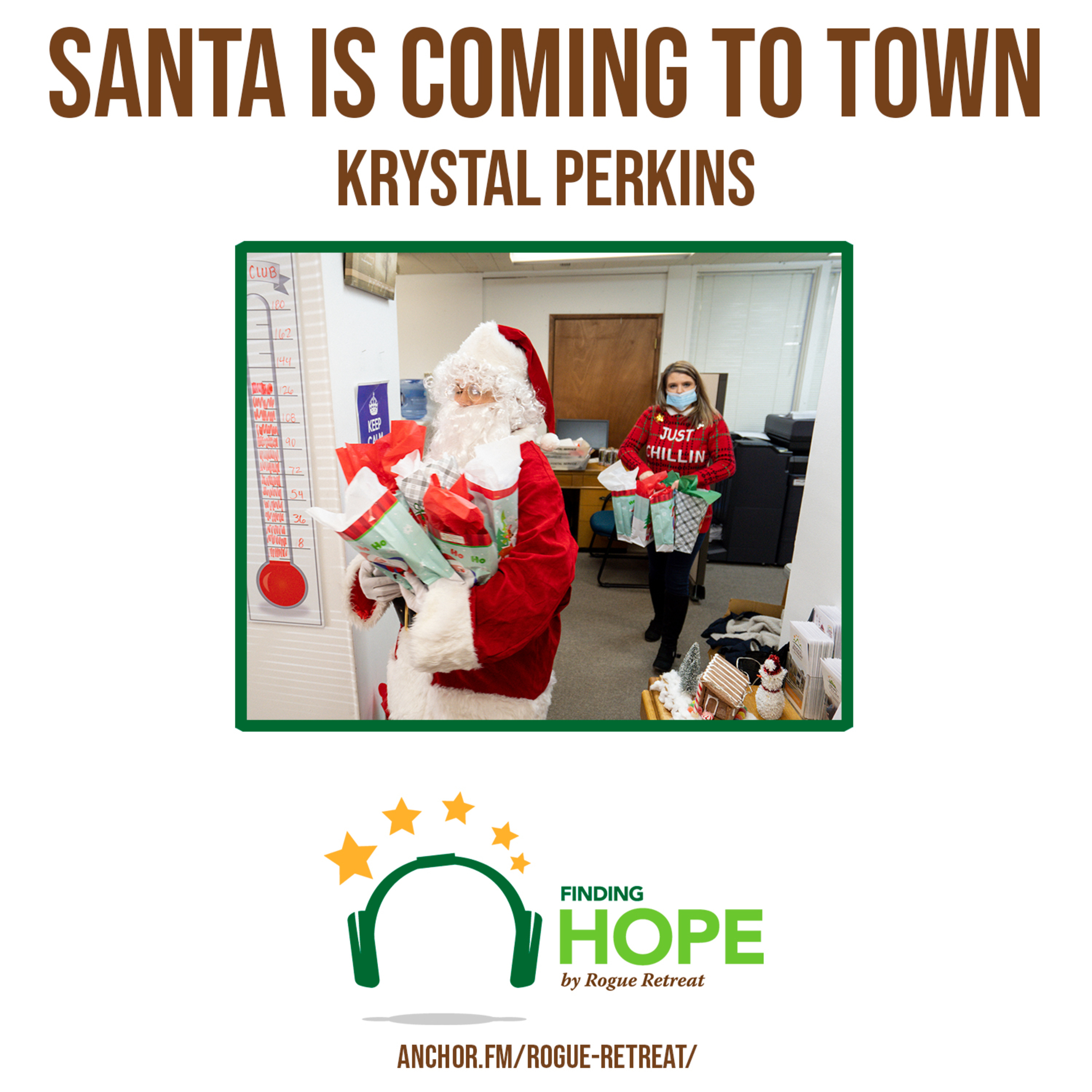 In this episode of the Finding Hope Podcast, Rogue Retreat marketing and procurement specialist Krystal Perkins tells about her new Christmas business venture, she reached out to her connections at the North Pole to coordinate with Santa Claus to make home visits to kids this holiday season. Not only is Santa coming to neighborhoods around Southern Oregon, but he is taking Christmas Eve to visit our Rogue Retreat properties.