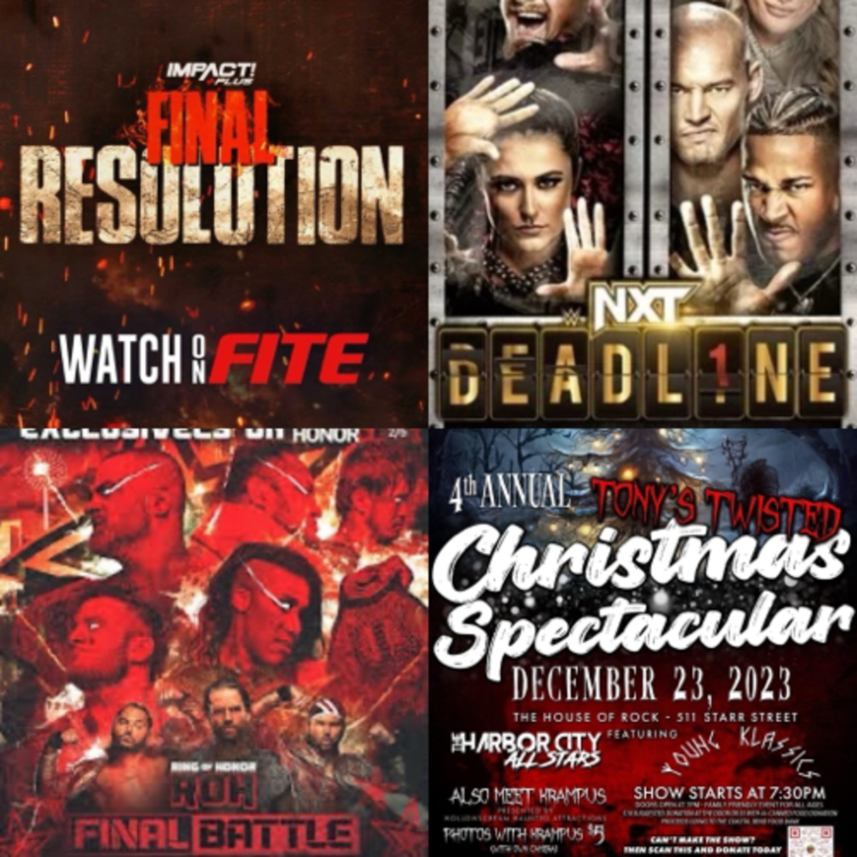 On this very special Christmas edition of the Main Event Talk Podcast. Last week we could not produce the episode that was supposed to have been released. However, we’ve decided to put not one but two episodes in one epic episode. 1st Half: we talk about what took place at NXT deadline and impact wrestlings final resolution. A main event talk exclusive, the confrontation between CM punk and Seth Rollins that took place on Monday night raw. Also another made of top exclusive, the other confrontation between Randy, Orton and Roman rings. also on this half of the Main Event Talk Podcast Tony’s twisted Christmas spectacular to take place at the house of rock on Saturday, December 23. We will discuss it and you will hear an episode of the Tony Gomez Show downbeat #23! Now! 2nd Half: on this half we will discuss ring of honors final battle that took place on December 16th and the media scrum that came along with the show. You will hear my version and you will also hear another version from the legendary Jim Cornette and the great Brian Last! Tony Khan may want to hear this episode. Also, another main event talk exclusive that features, Samoa, Joe, and MJF and AEW worlds end to take place on Saturday, December 30. Plus a very special Christmas message to all of you that listen to this podcast. It’s another long episode full of action, pack results, epic rants, wrestling news, and a whole Lotta music. It’s going to be a long episode. Merry Christmas and happy holidays.