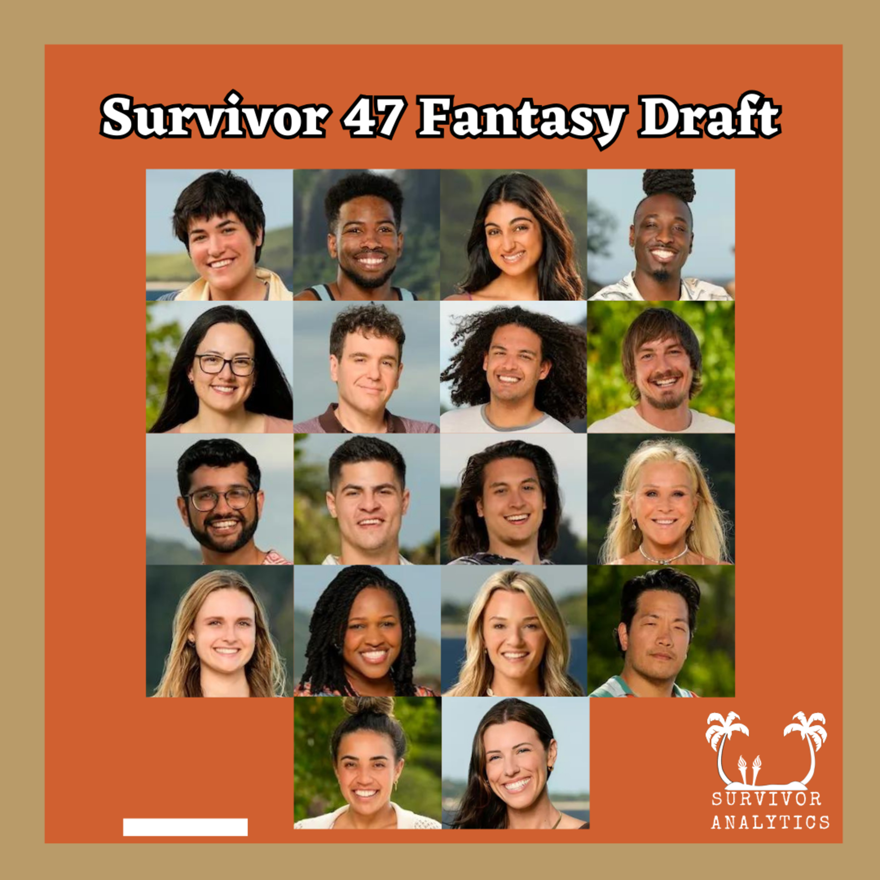 Welcome to Survivor Analytics! Survivor 47 is just around the corner, airing Wednesday, September 18th. In this week's episode, Jack & Clyde rope in five of their closest friends to draft contestants for their Survivor Fantasy League. Participants will draft in the following order: