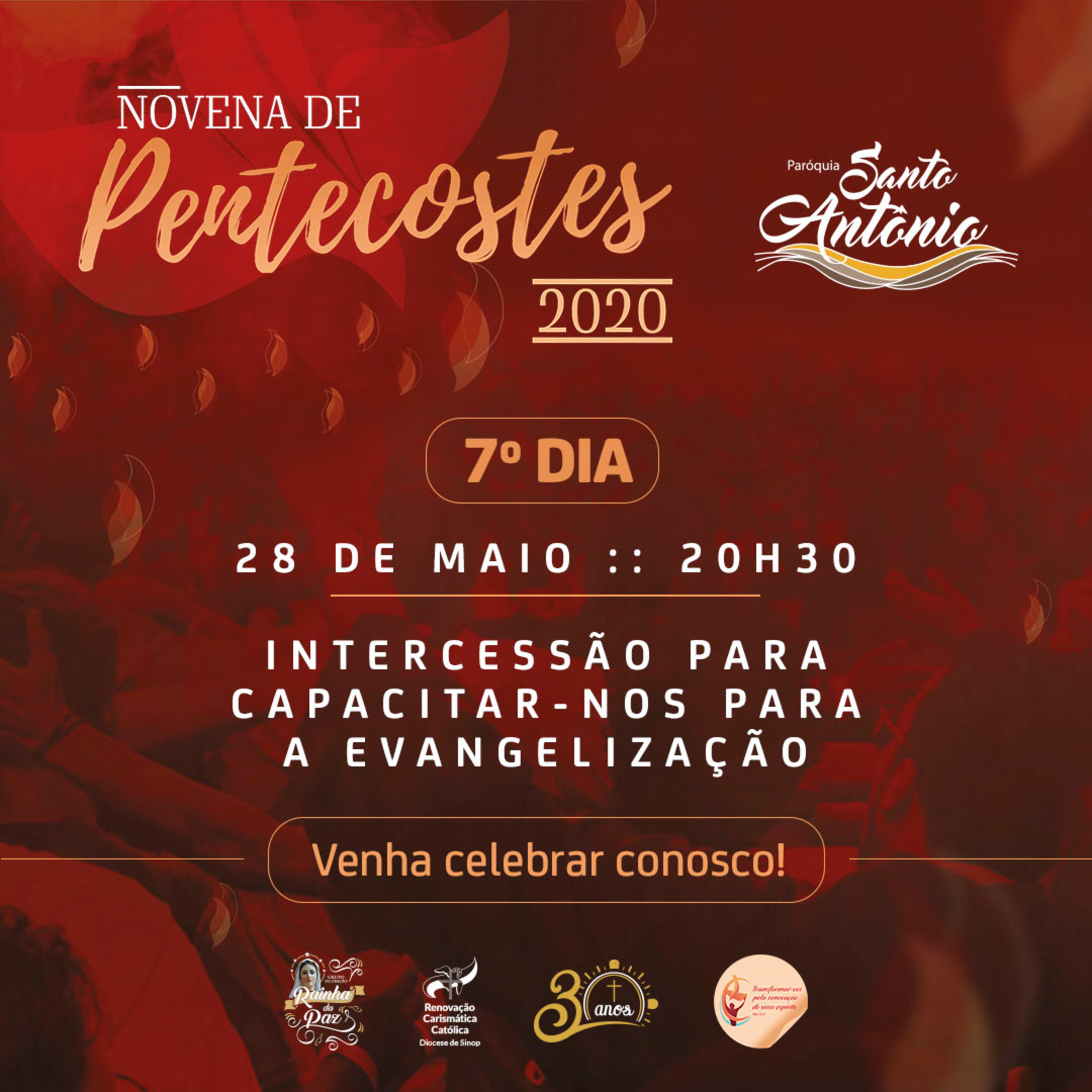 28/05 TEMA: Intercessão para capacitar-nos para a evangelização Vem, Espírito Santo, capacite-nos a cumprir seu chamado para sermos testemunhas nos confins da terra, a sermos portadores da Boa Nova (At 1, 8).