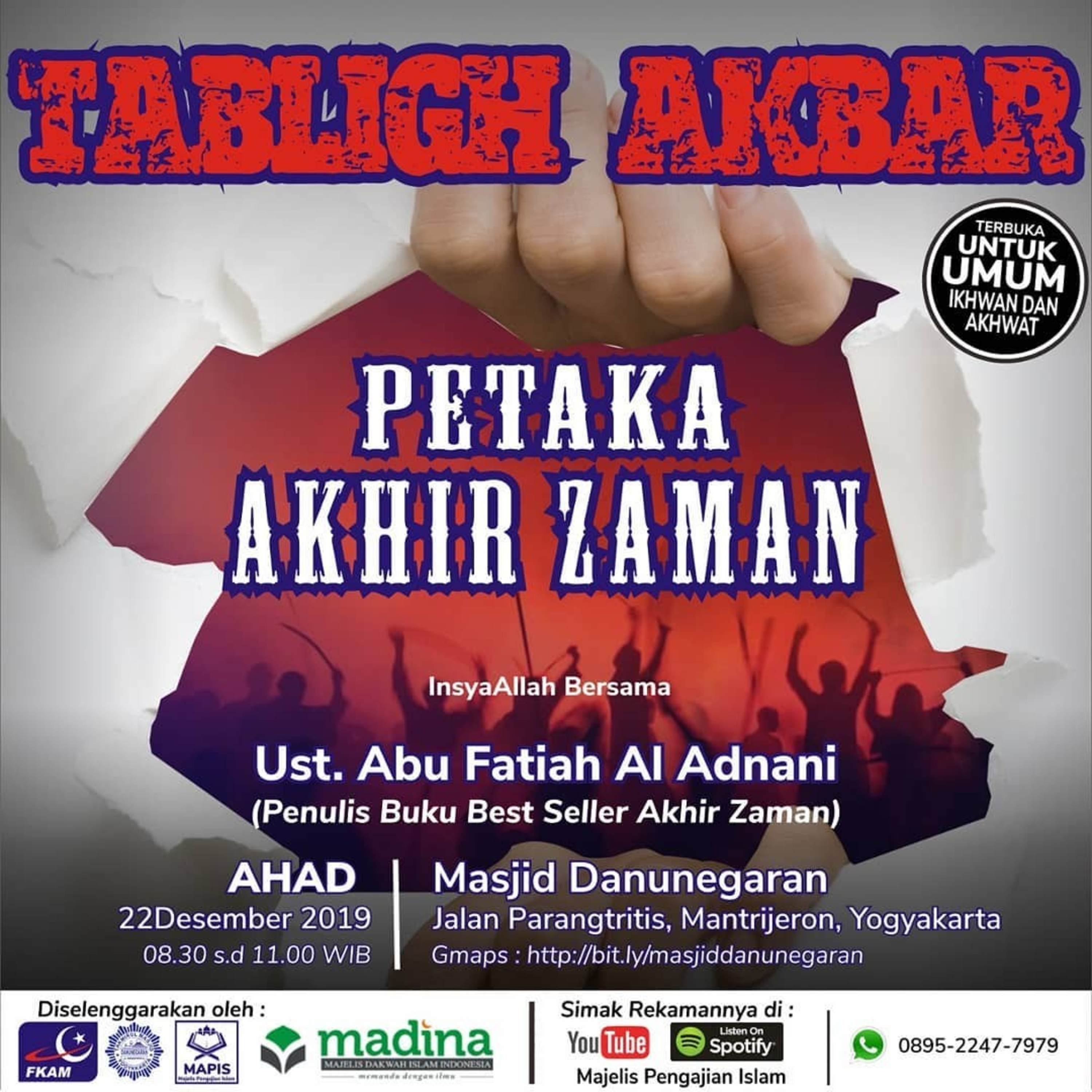 Rekaman Kajian Akbar bersama Ustadz Abu Fatiah Al Adnani di Masjid Danunegaran, Mantrijeron, Yogyakarta rutin yang diselenggarakan oleh FKAM Yogyakarta dan Takmir Masjid Danunegaran.