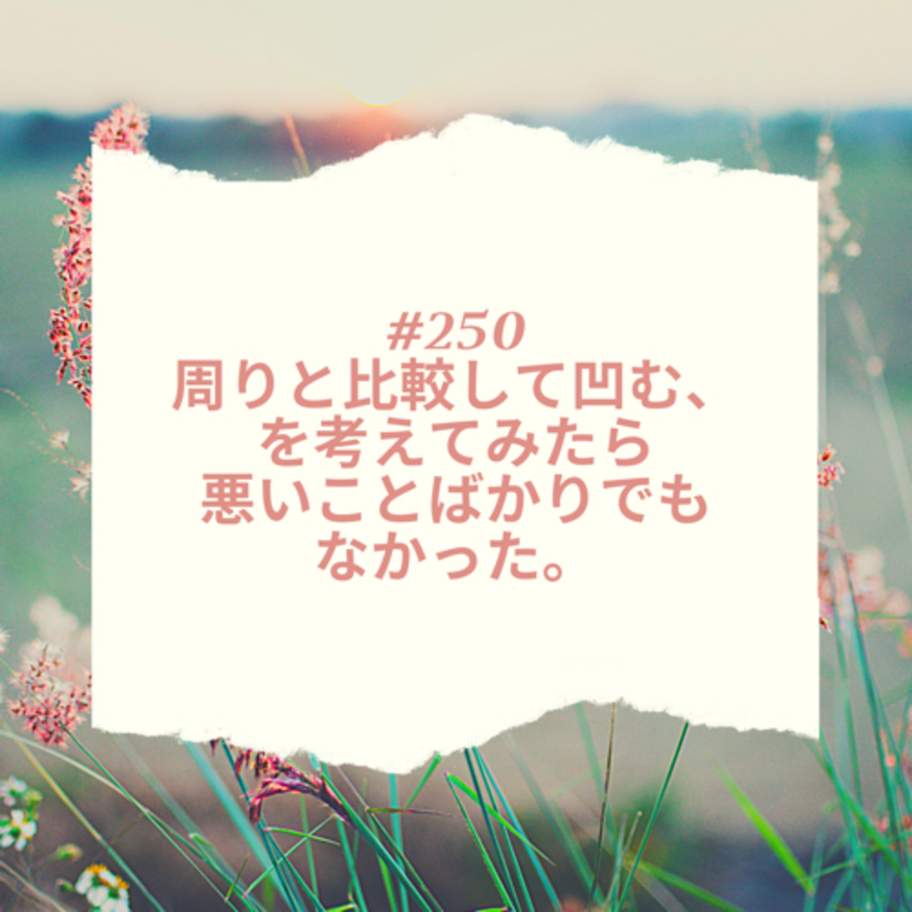 よくないとわかっていても、周りと比較して凹む。でも、それは周りにいる人が素敵な人、すごい人だからじゃないか?数年前、こんな凹んでいただろうか?自分がなりたいと思える要素を持つ人が周りに増えた。世界が変わったということでは?凹む質が変わった。とポジティブにとらえよう!