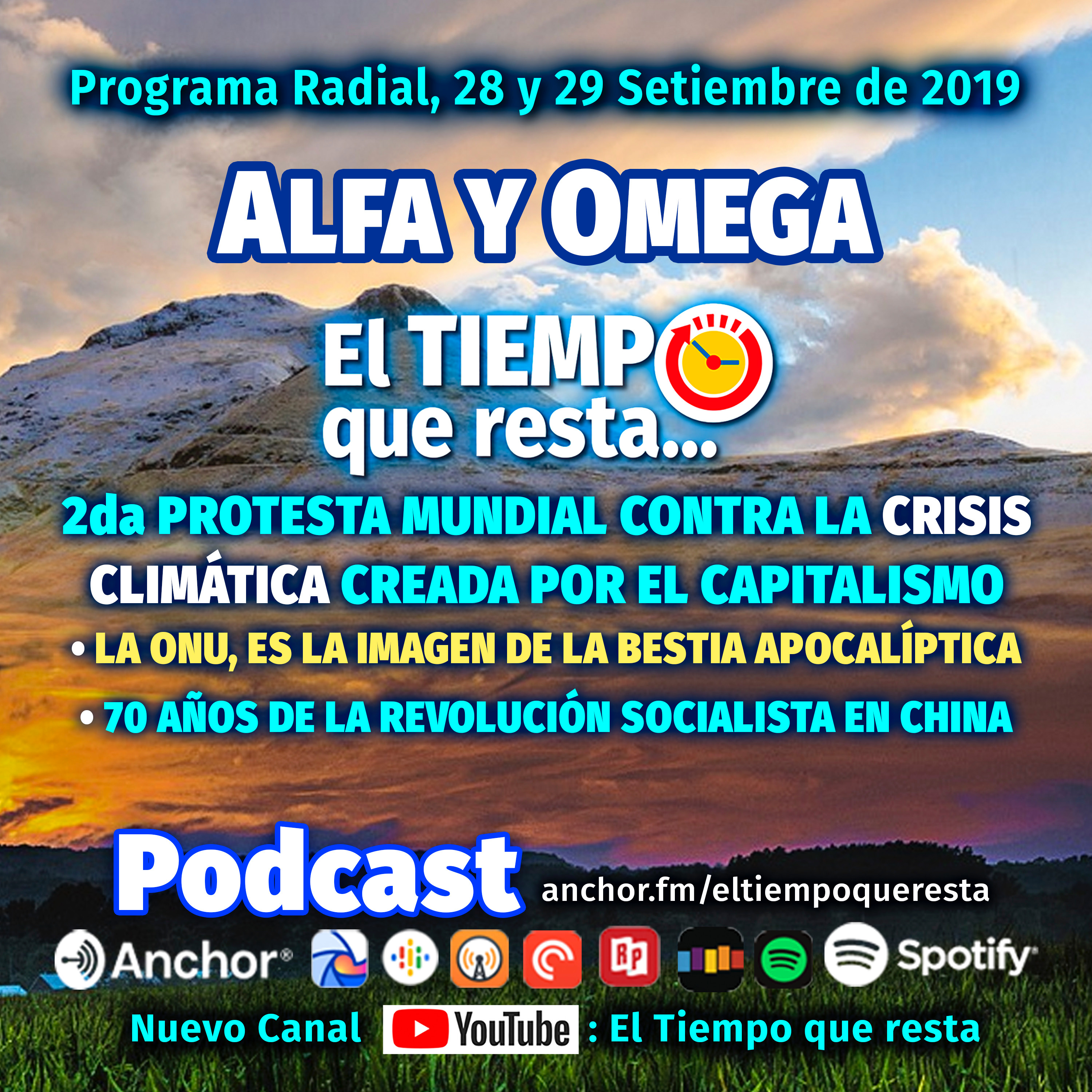 El Tiempo que resta, es una visión del cambio de era; el planeta de pruebas Tierra, vive la materialización del Apocalipsis con la llegada de la Nueva Doctrina escrita por el Enviado Alfa y Omega; compartimos información sobre el sistema de vida, la economía, la ecología, la geopolítica, la nueva Moral y la Justicia divina. Del Perú para la Patria Planetaria.