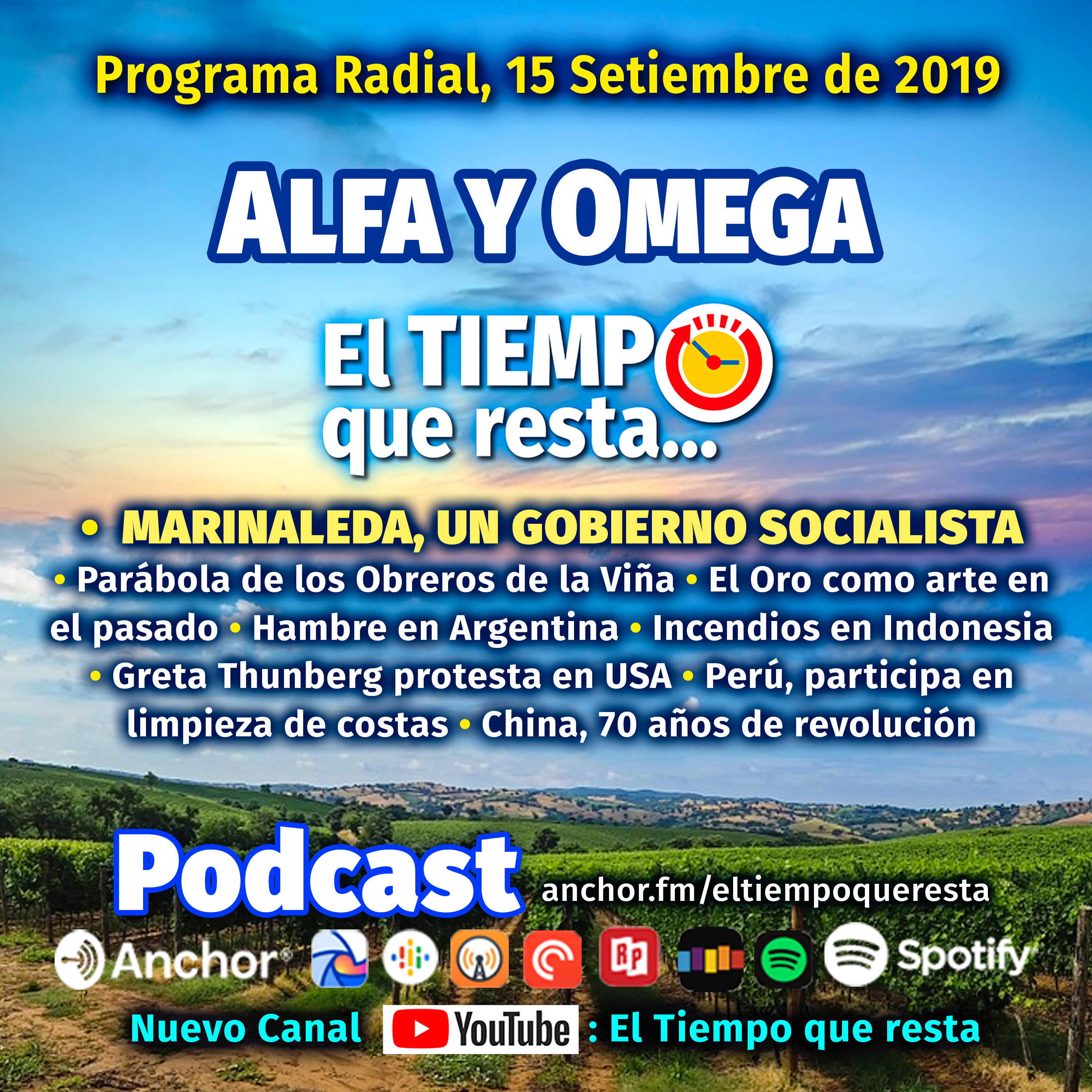 El Tiempo que resta, es una visión del cambio de era; el planeta de pruebas Tierra, vive la materialización del Apocalipsis con la llegada de la Nueva Doctrina escrita por el Enviado Alfa y Omega; compartimos información sobre el sistema de vida, la economía, la ecología, la geopolítica, la nueva Moral y la Justicia divina. Del Perú para la Patria Planetaria.
